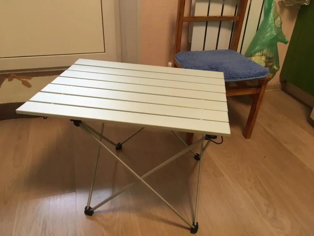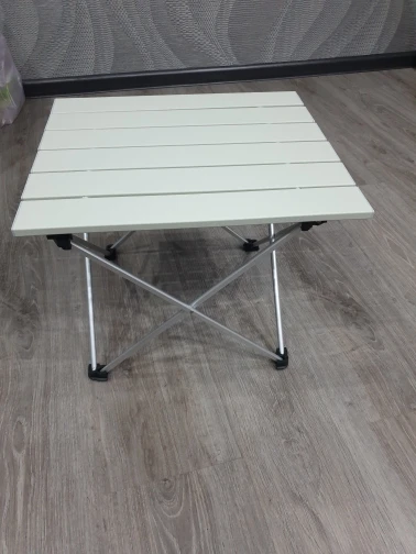 Добротный, надежный на вид столик! На природе не испытывал, но, думаю, проблем не будет! Все собрано на заклепках, толщина аллюминия достаточная, не фольга. Фактический размер 29 см на 40 см. Можно брать!