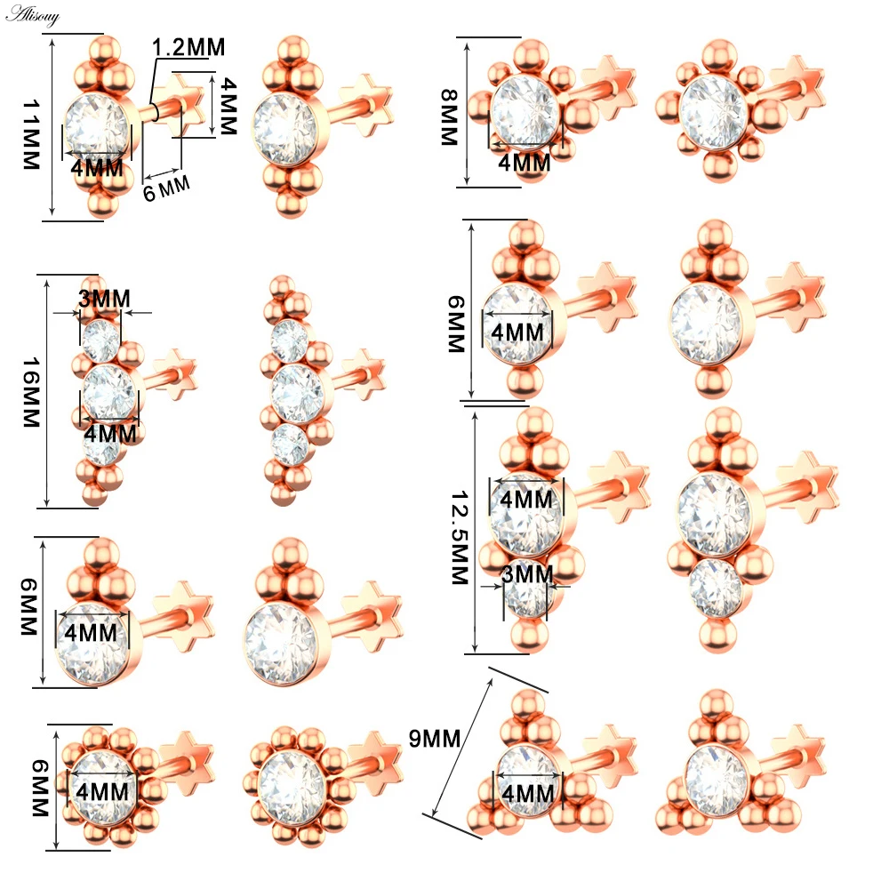Кольцо Alisouy с цирконом для пирсинга, Ювелирное Украшение для прокола губ, козелка уха, серьги, Надеваемые На ушной хрящ, губная серьга-гвоздик, 1 шт.