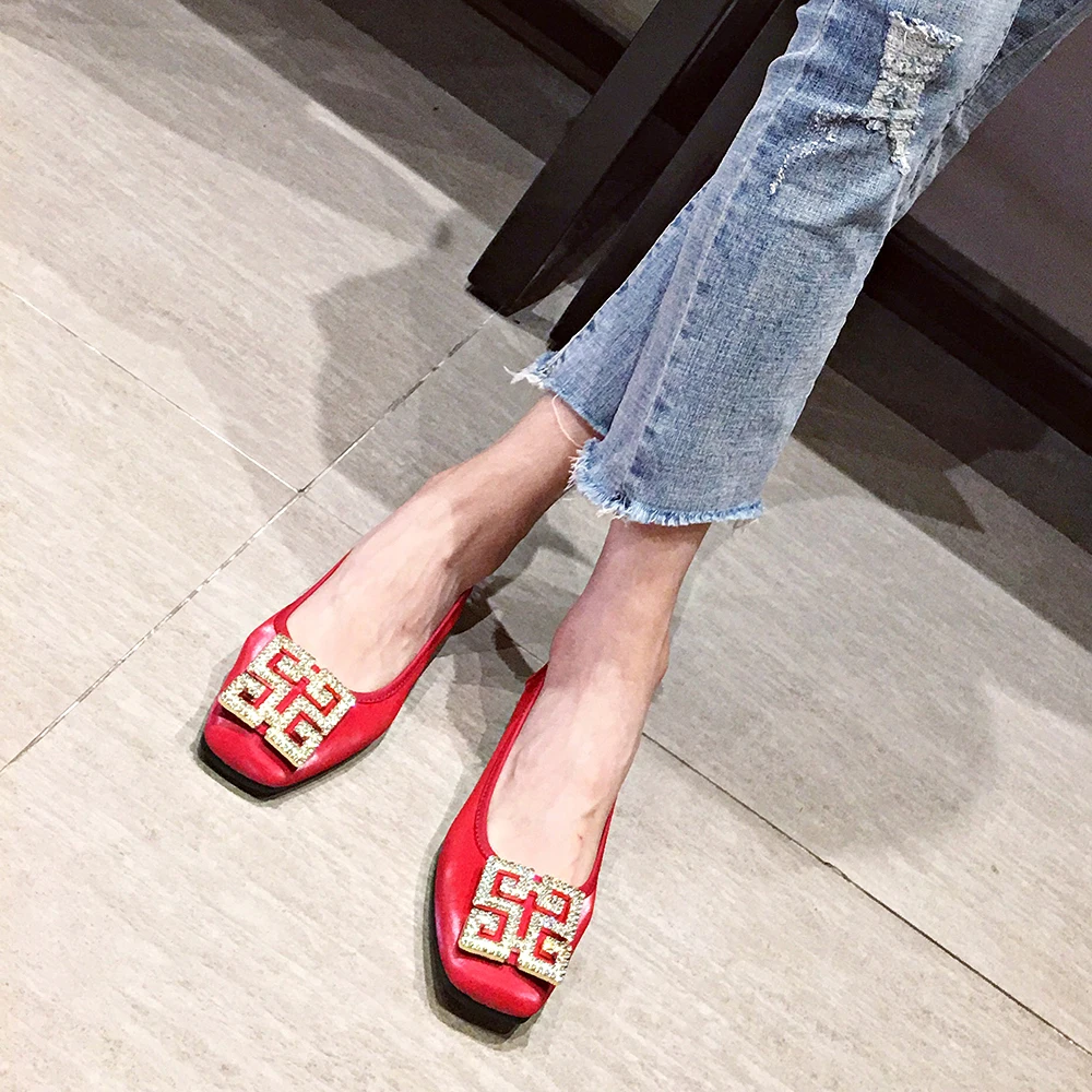 Женские туфли-лодочки на плоской подошве, с вышивкой, красные, весна-лето, 2020