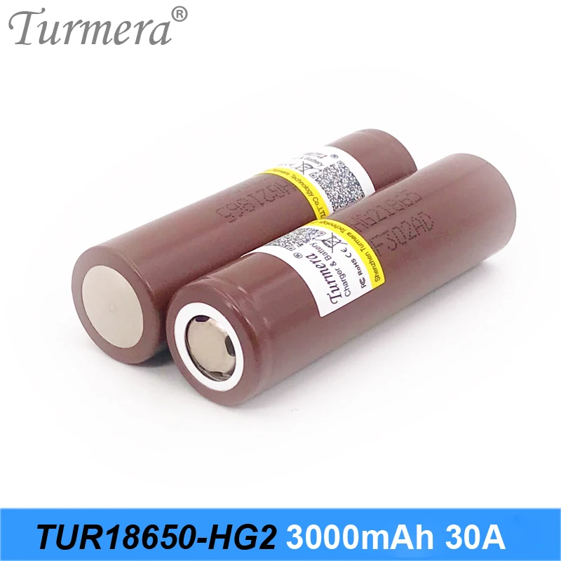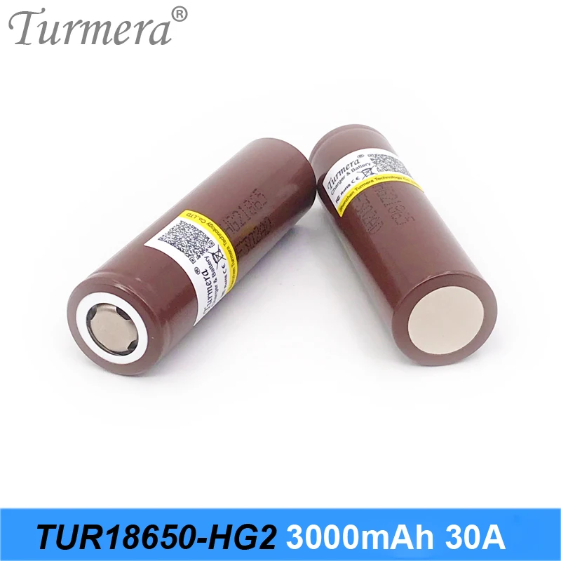 Оригинальный аккумулятор Turmera 18650 HG2, 3000 мАч, 3,6 В, 20 А, 30 А, аккумулятор с высоким током разряда для шуруповерта, шуры, Шурика, электронной сигареты, аккумулятора для электровелосипеда
