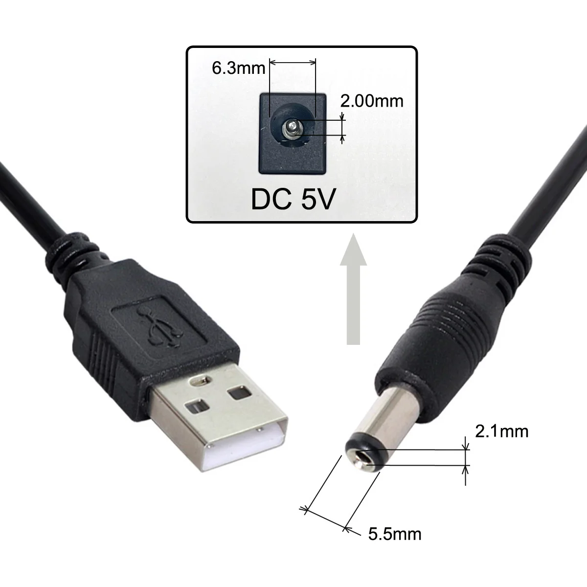 100 см USB 2,0 A Тип папа до 5,5x2,1 мм штекер питания постоянного тока Цилиндрический разъем 5 в кабель