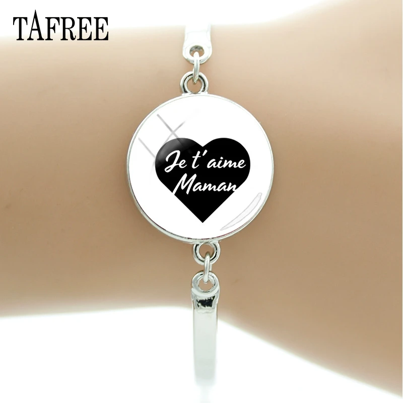 TAFREE черное сердце Je love материнская мама очаровательные браслеты love Papa Glass браслеты с кабошонами jewelrys для отца и матери NT111
