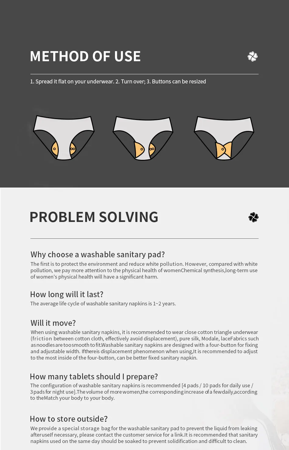 Feature TwoSuper absorbent ; Washable ; Reusable