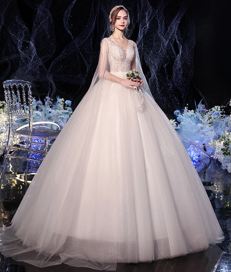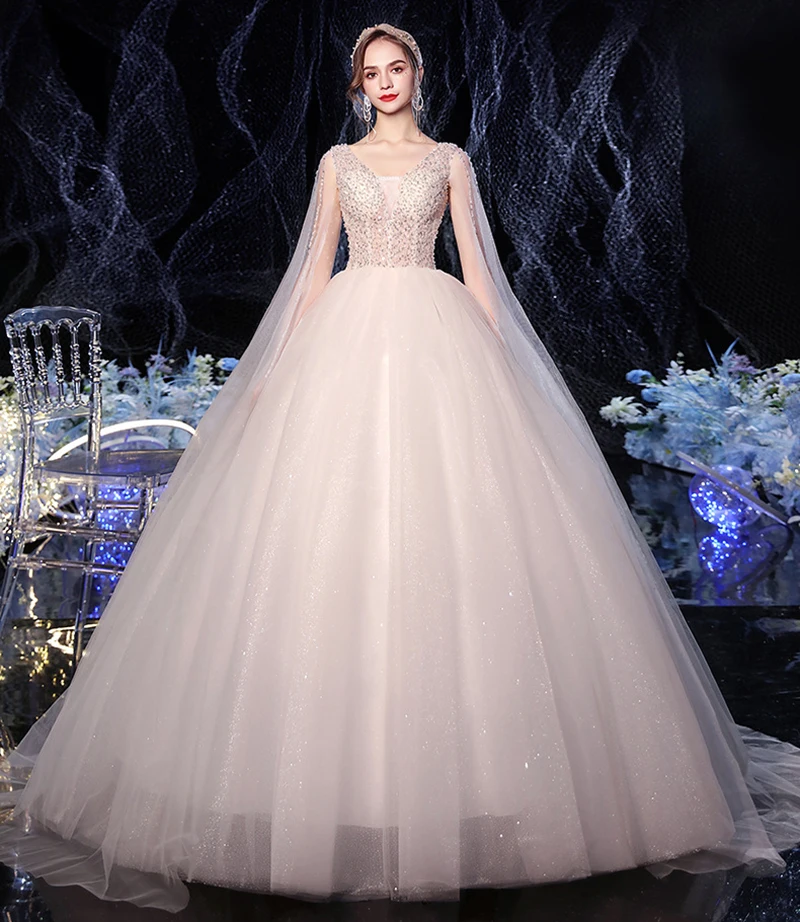 Женское свадебное платье с блестками, элегантное платье цвета слоновой кости до пола с глубоким V-образным вырезом, большие размеры, весна 2021