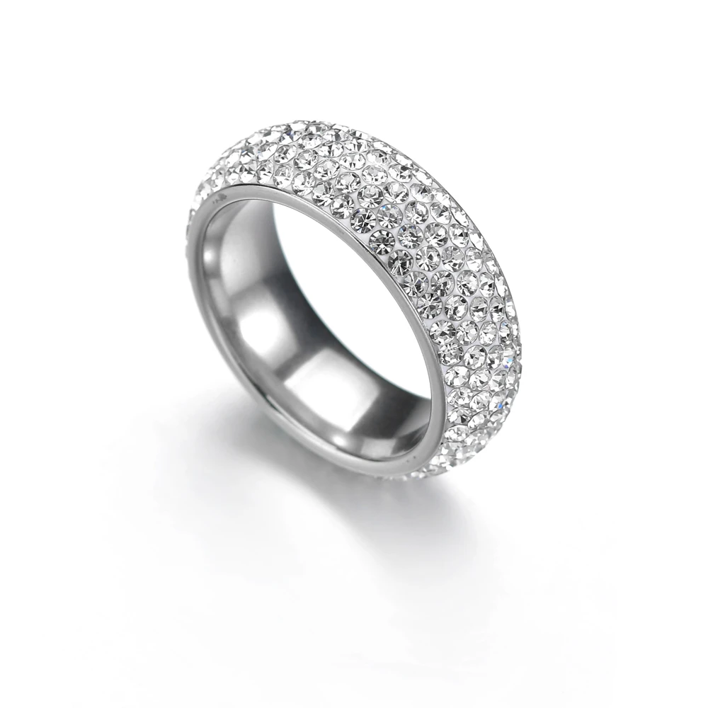 Модное обручальное кольцо для женщин, 5 рядов кристаллов, блестящие, разноцветные, из нержавеющей стали, очаровательные обручальные кольца, мужские ювелирные изделия, Размер 7-11