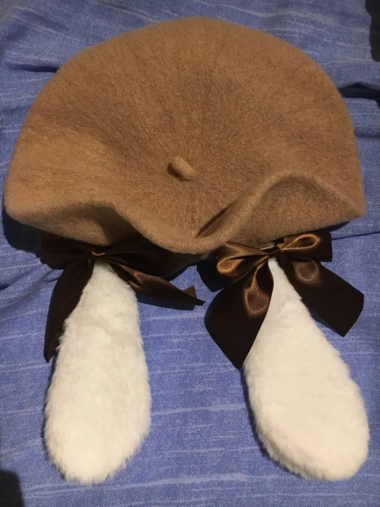 Заячьи ушки и коричневые банты отстегиваются, но прикрепляются булавкой, что делает их довольно опасными, если эта часть шляпы плотно прилегает к голове, так как это означает, что булавки могут открываться. Кроличьи ушки также поставляются с прикрепленными к ним заколками, чтобы их можно было использовать как отдельный аксессуар по желанию. Шляпа имеет более низкое качество, чем другие шляпы в том же магазине, и она гораздо более просвечивается.