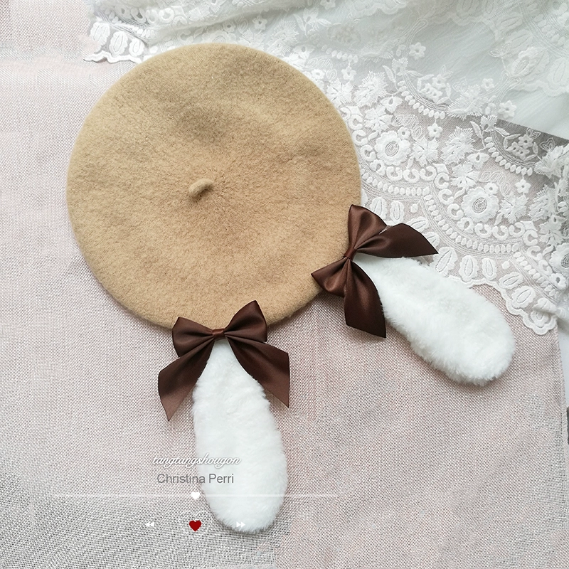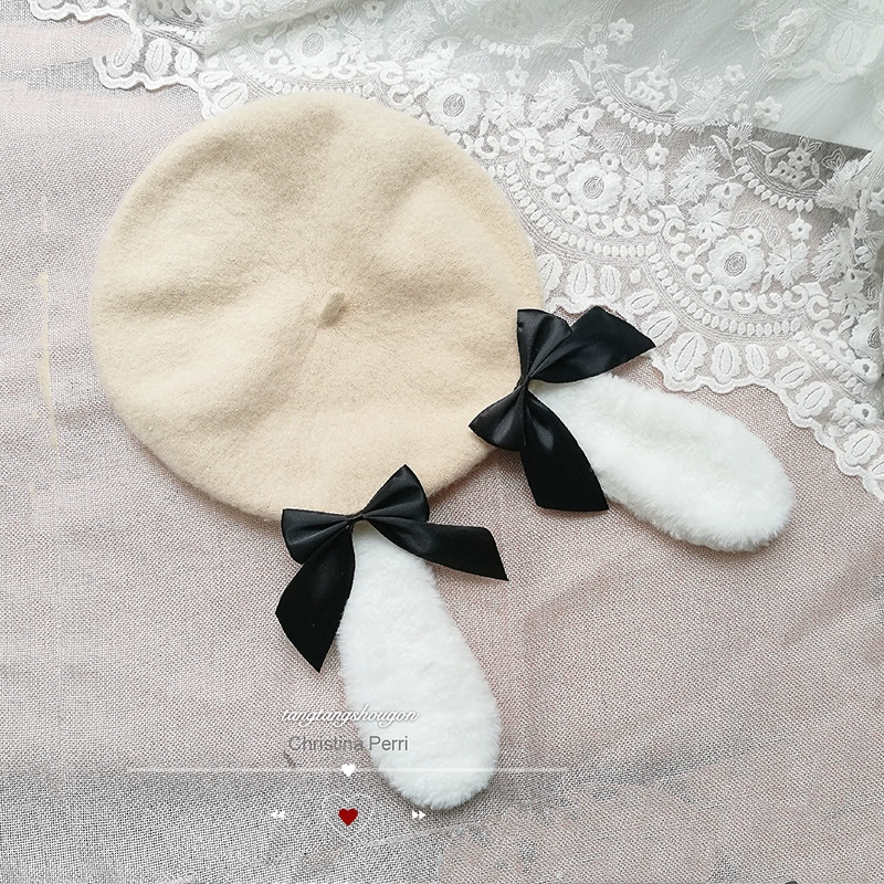 Плюшевый берет-бантик-ушки в виде кролика в стиле Лолиты, милая винтажная шляпа с рисунком в стиле японской Девушки Мори, Осень-Зима шапка с дизайном Тыква, плоская кепка
