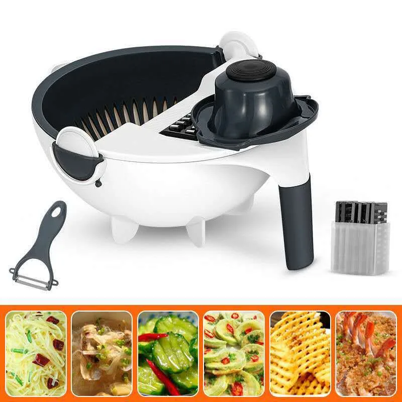 Волшебная многофункциональная вращающаяся овощерезка с сливной корз...