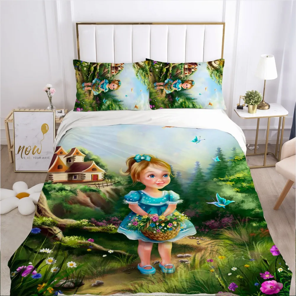 Детский комплект постельного белья с рисунками из мультфильмов для детской кроватки, набор пододеяльников, наволочка, одеяло, покрывало, 100x12, 0140x210, для маленькой девочки