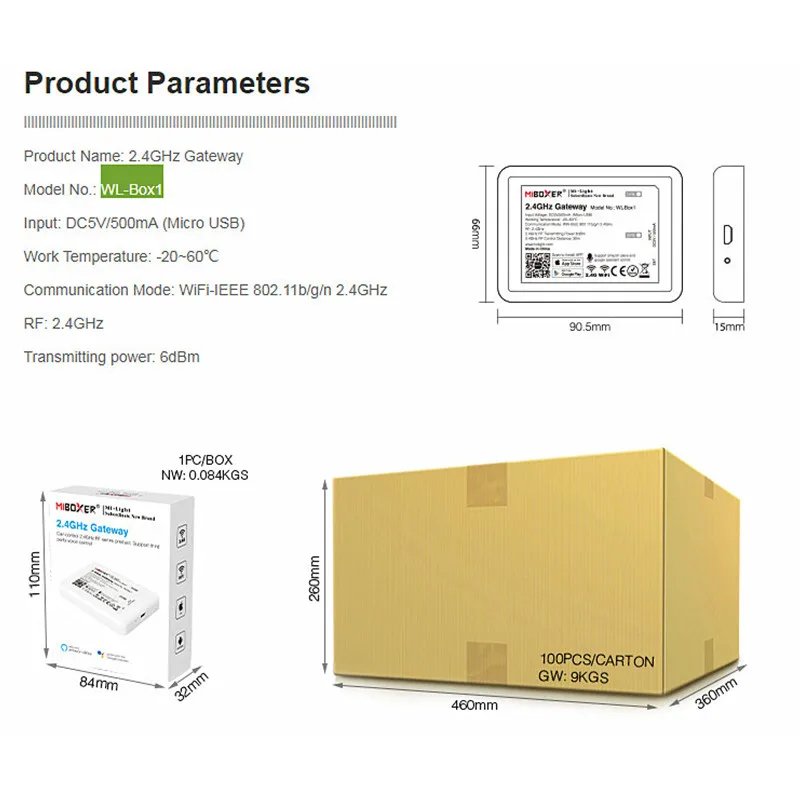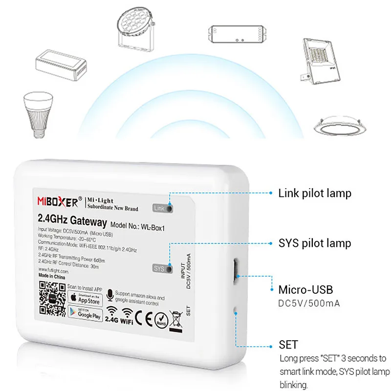 Беспроводной контроллер Miboxer WL-Box1 Wi-Fi Milight 2,4 ГГц iBox RF удаленный приложение для смартфона/голосовой контроллер Alexa Google Assistant