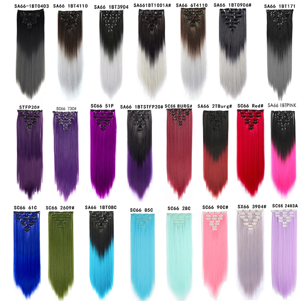 Длинные прямые синтетические женские клипсы для наращивания волос 22 дюйма заколка для волос термостойкая белая красная фиолетовая розовая заколка
