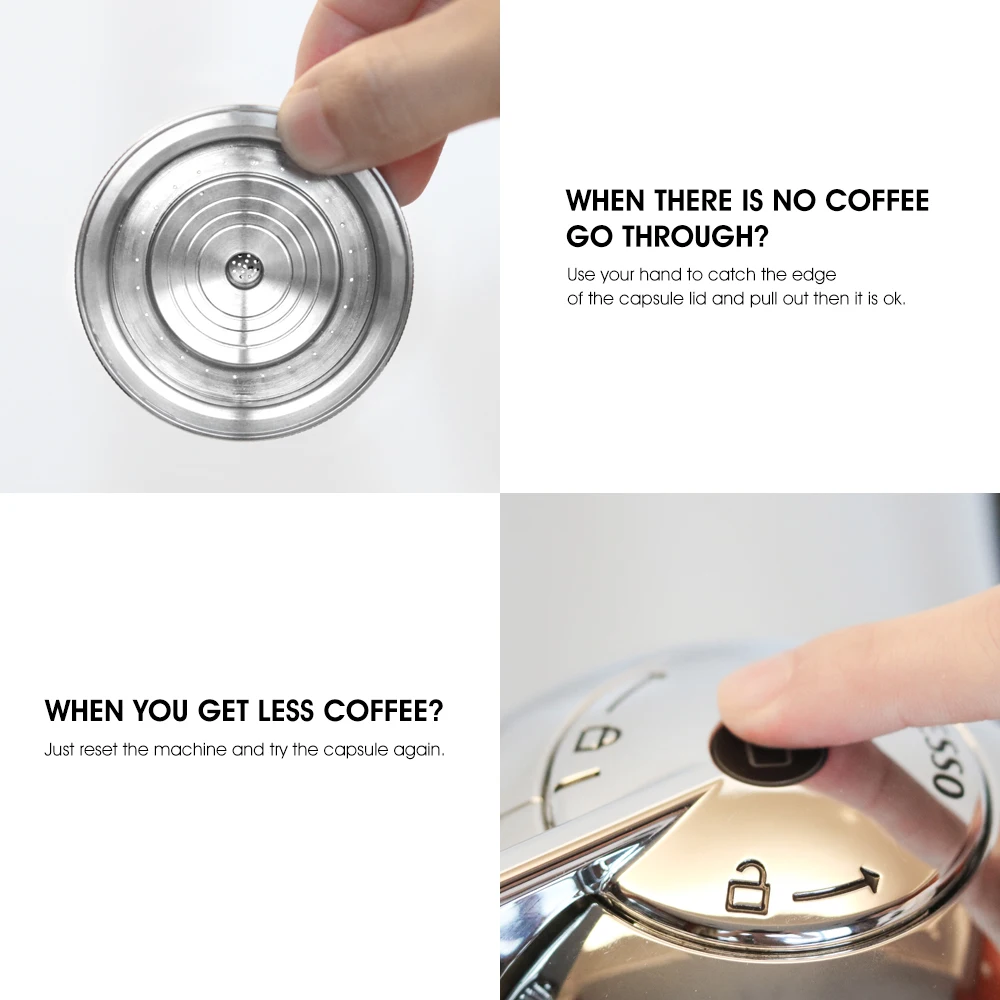 1. При первом использовании, пожалуйста, положите капсулу в кофемашину Nespressp без кофемашины, запустите ее, проверьте и убедитесь, что капсула совместима с кофемашиной.