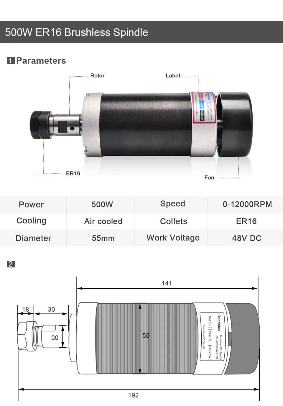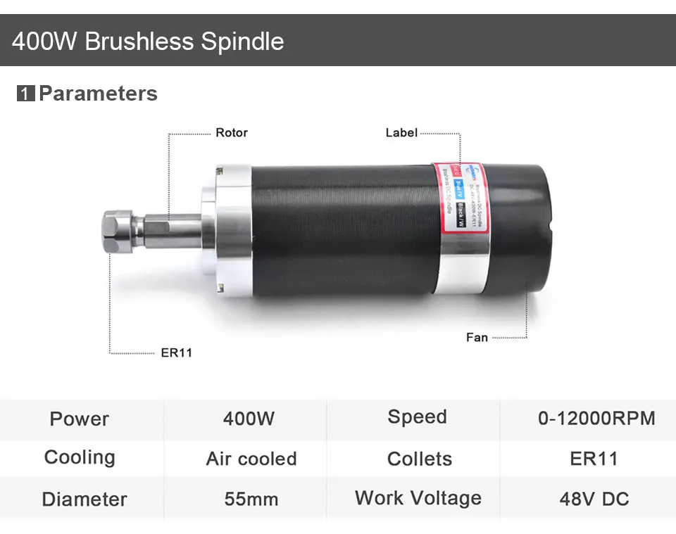Шпиндель Daedalus 400 Вт, 500 Вт, 600 Вт, с ЧПУ, диаметр 55 мм, ER11ER16, патрон 48 В постоянного тока, скорость отскока по напряжению, Малый двигатель