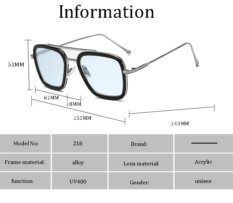 Солнцезащитные очки Tony Stark в стиле ретро для мужчин и женщин, роскошные квадратные брендовые дизайнерские солнечные очки