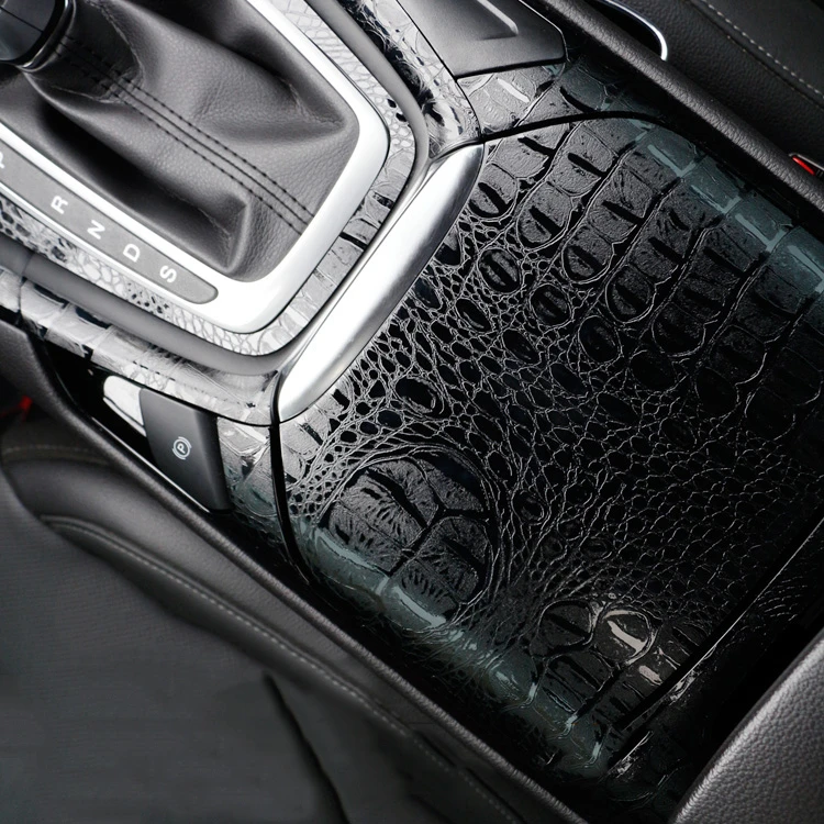 Черная текстурная виниловая автомобильная пленка из крокодиловой кожи, наклейка, клейкая наклейка, покрытие для салона автомобиля