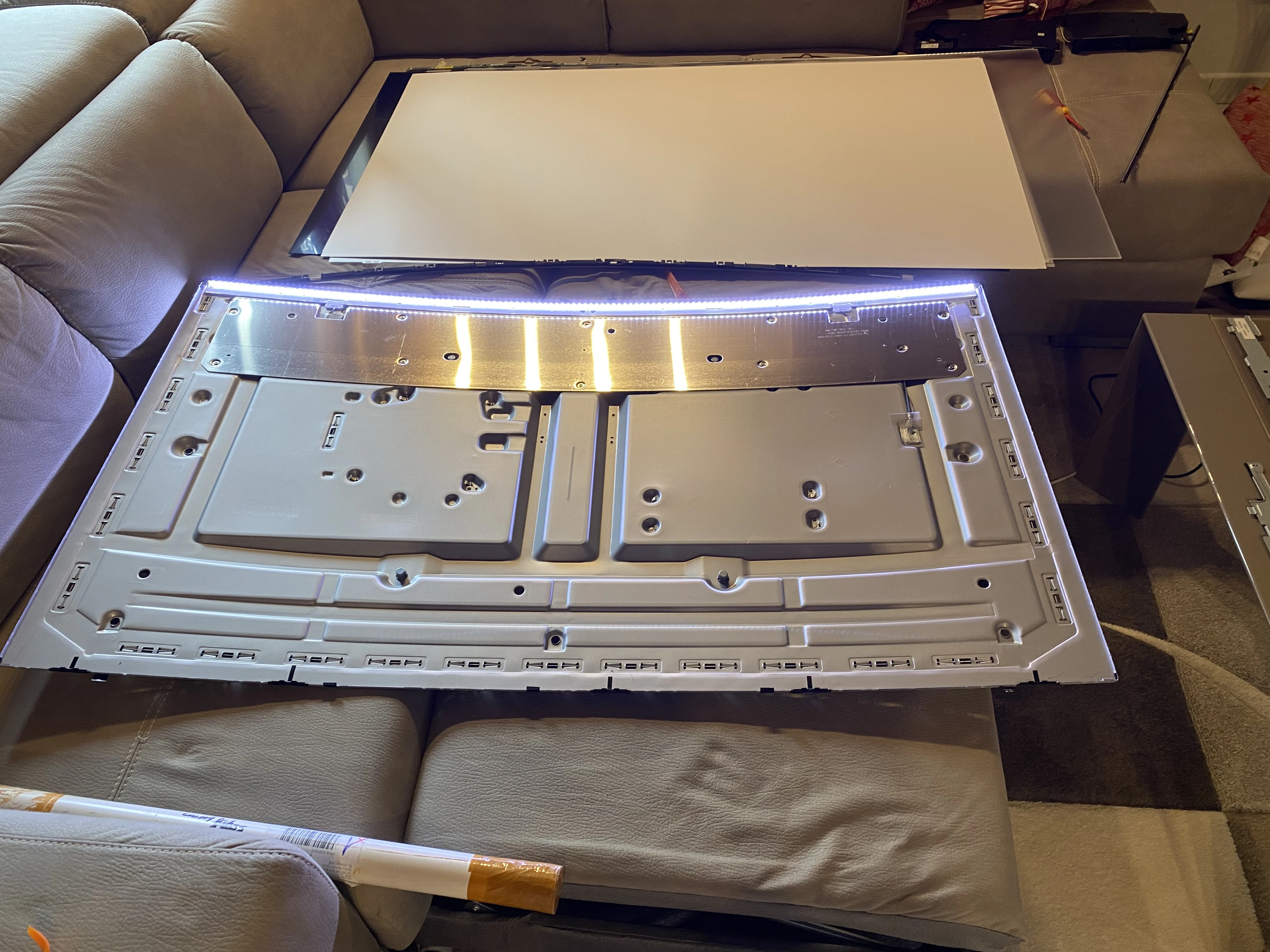 У меня есть телевизор Samsung 55 дюймов (мод. UE55KU6510) мне, что вы отключили некоторые из одиночных светодиодных ламп (левый), я заменил только один светодиодный бар и такой же, как и оригинальный. Вы заказываете 30 июня и прибыли 16 июля, и теперь он работает отлично и советуем купить