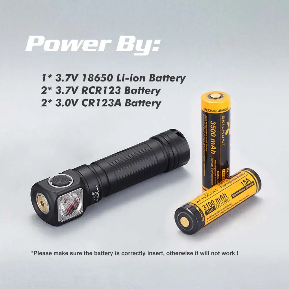 Аккумулятор: 1 × 18650 , 2x CR123A , 2x RCR123A