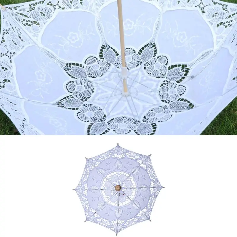 Женский зонт ручной работы с вышивкой и кружевом, свадебный зонтик невесты с вышивкой, однотонный белый романтический реквизит для фото, 8