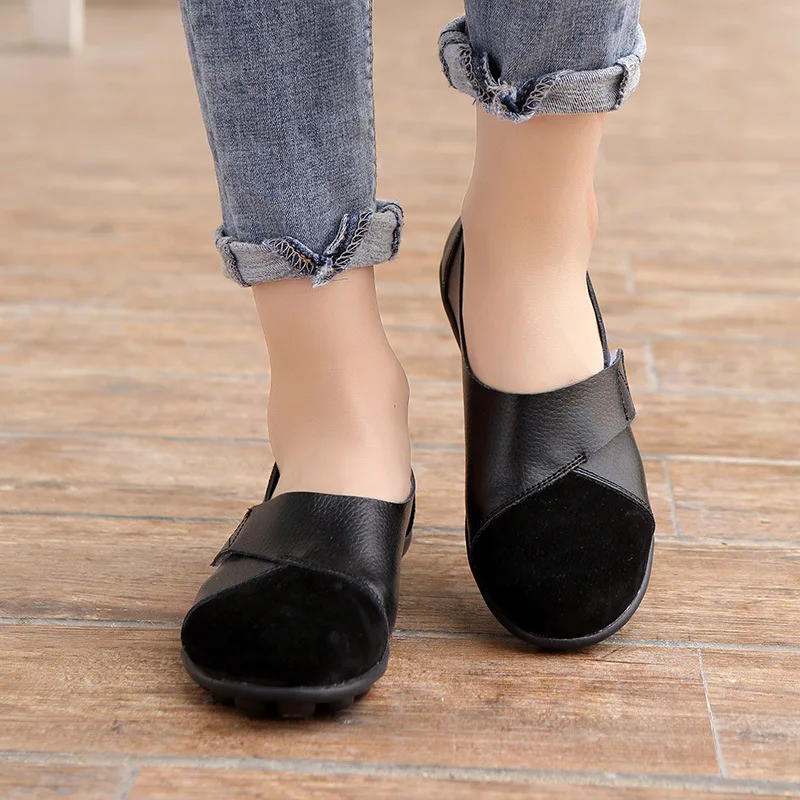 Туфли-лодочки женские из мягкой натуральной кожи, лоскутные замшевые массажные, на плоской подошве, на липучке, большие размеры 41-44, ert56