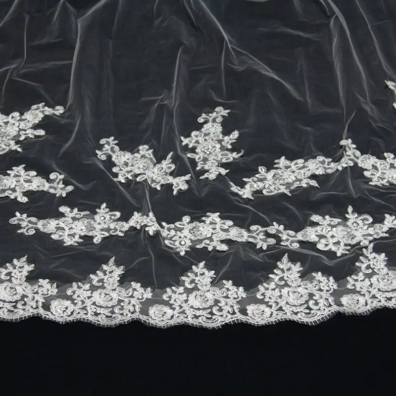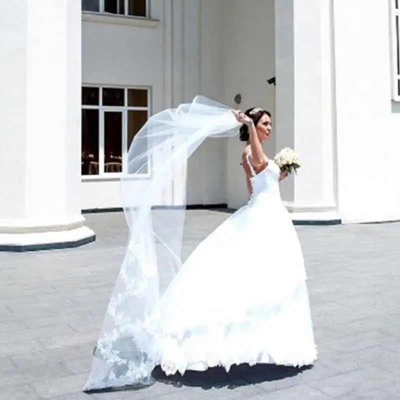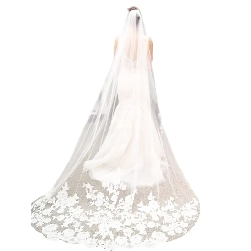 Свадебная фата для женщин, 3 м, сверхдлинная, с вышивкой и цветочными кружевами, в стиле пэчворк
