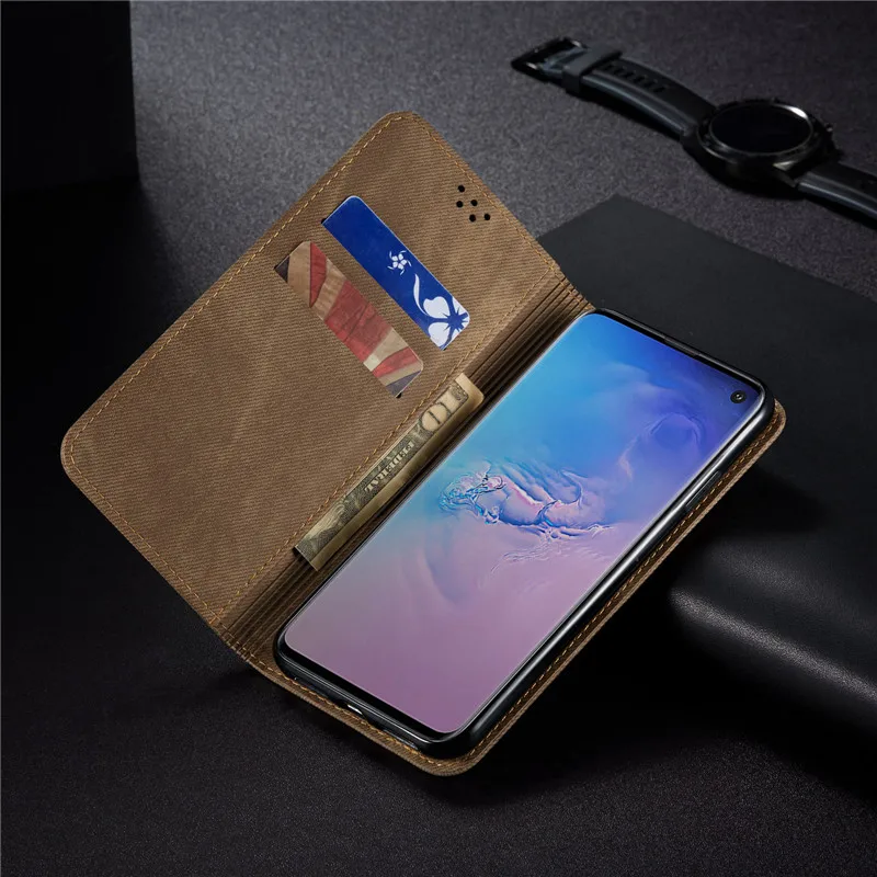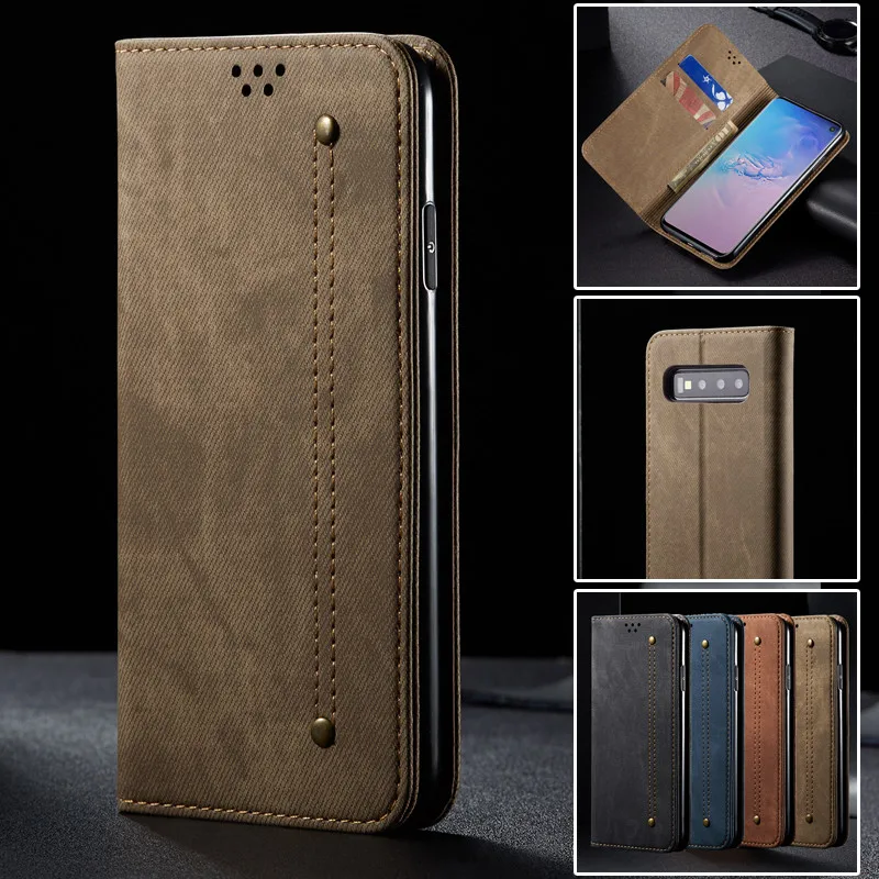 Кожаный чехол-книжка в стиле ретро из джинсовой ткани для телефона ...