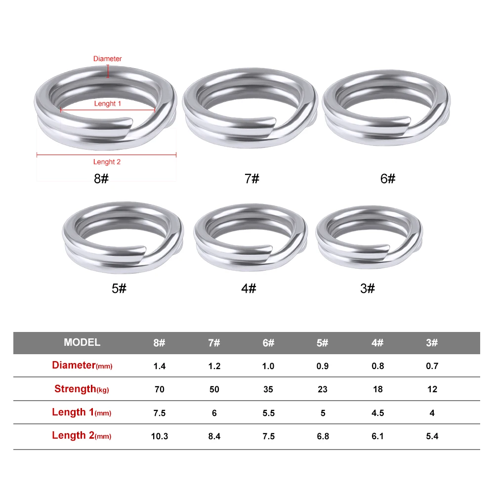 50 шт. 304 нержавеющая сталь 3 #-8 #, рыболовное раздельное кольцо,...