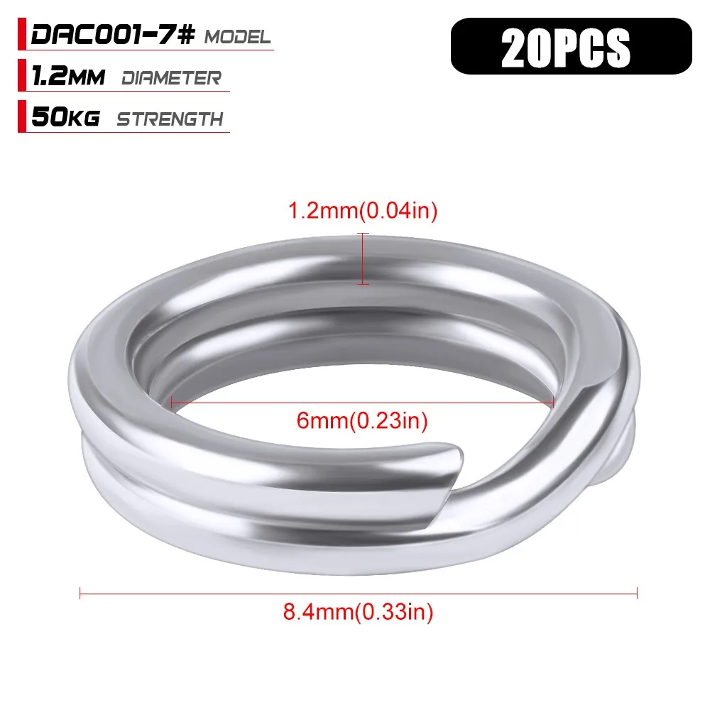 Рыболовные разрезные кольца для кривошипа, жесткая приманка, серебристая, нержавеющая сталь, 3 #-8 #, двойная петля, разрезной инструмент для открытия карпа, Аксессуары для рыбалки, 20 шт.