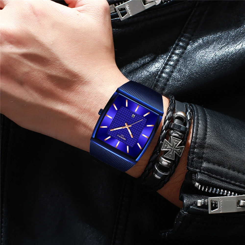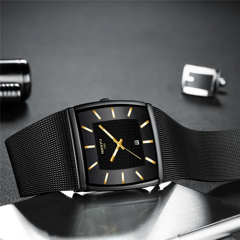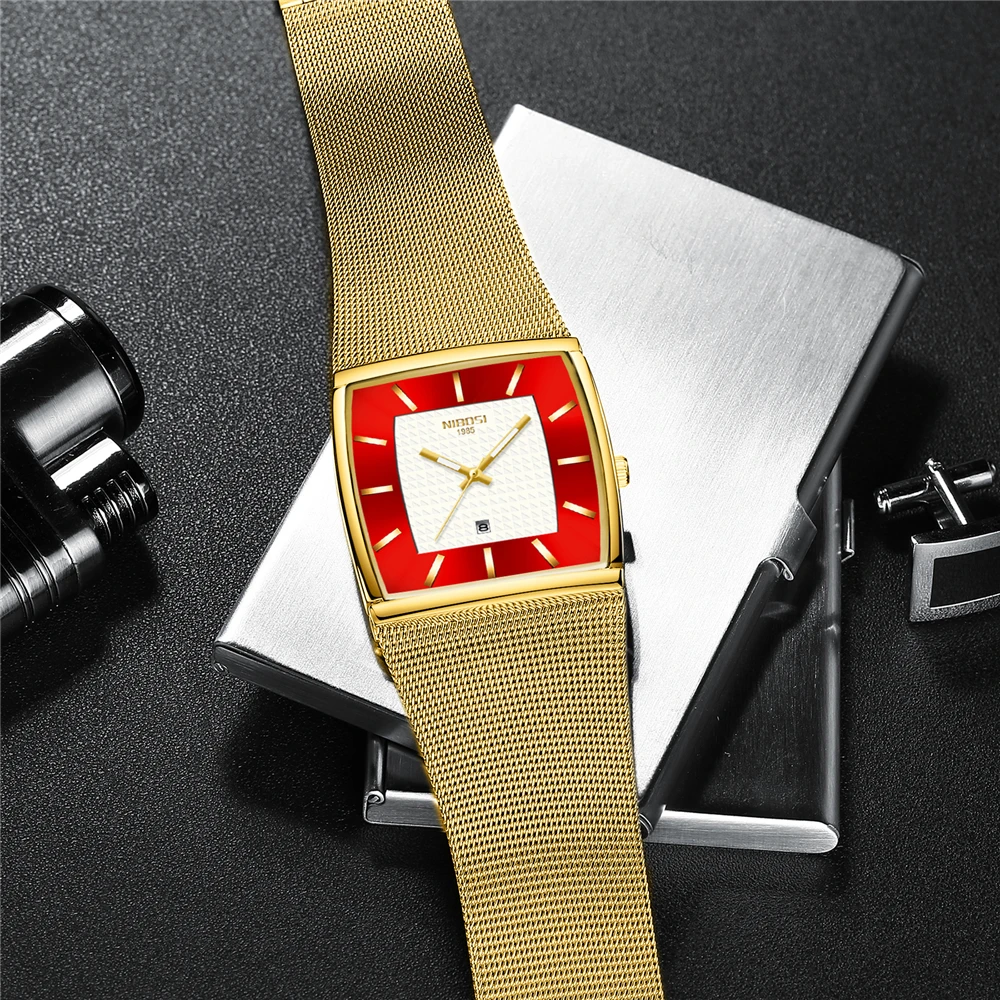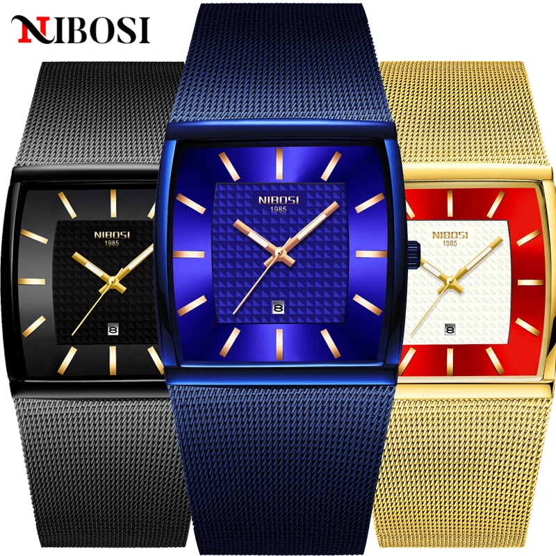 2021 мужские часы NIBOSI квадратного дизайна, Роскошные ультратонкие наручные часы ведущей марки для мужчин, водонепроницаемые мужские часы с автоматической датой