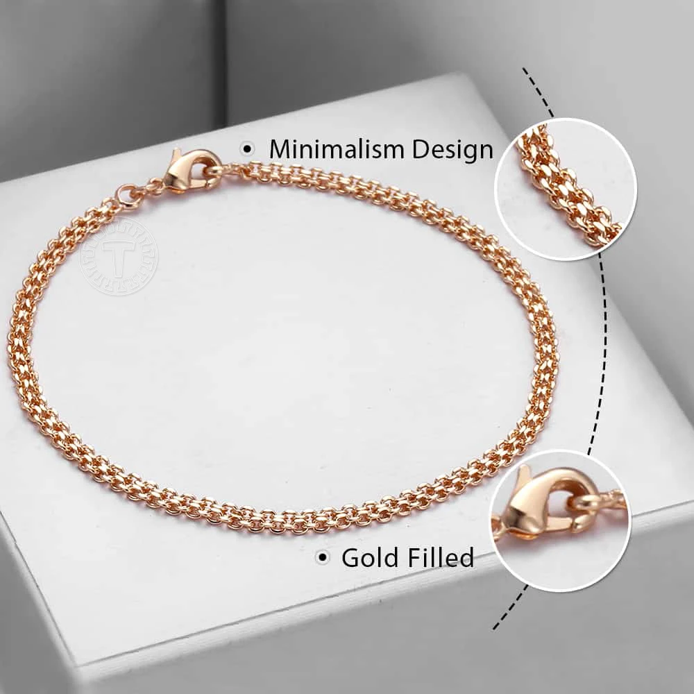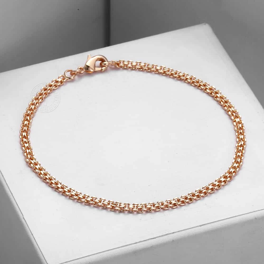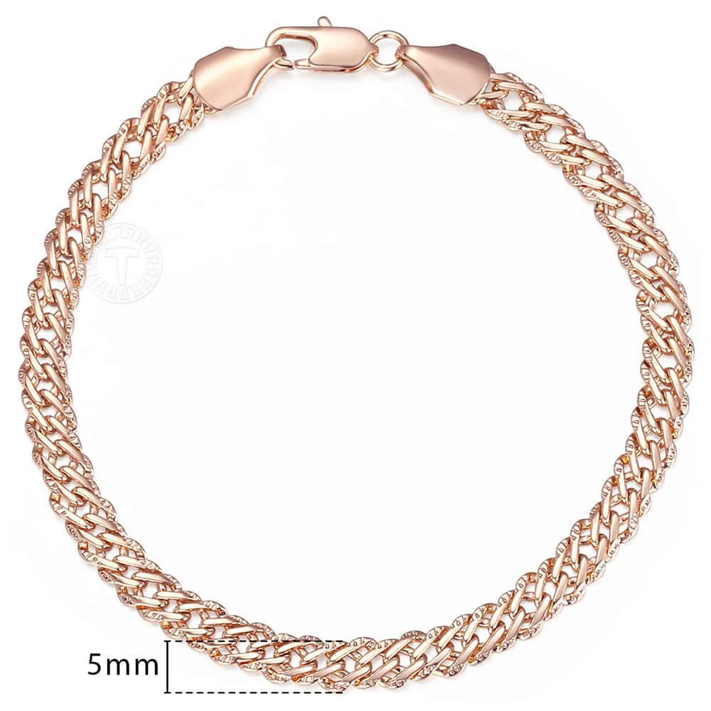 Женские браслеты из кубинской панцирной цепи Bismark, плетеные браслеты под розовое золото 585 пробы, Подарочная бижутерия, 45 мм, LCB04