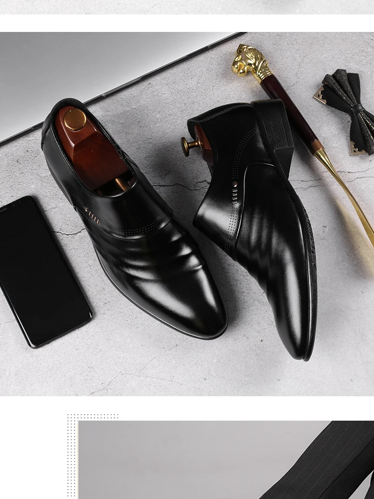 Новинка 2021, кожаная мужская обувь для офиса, свадьбы, с острым носком