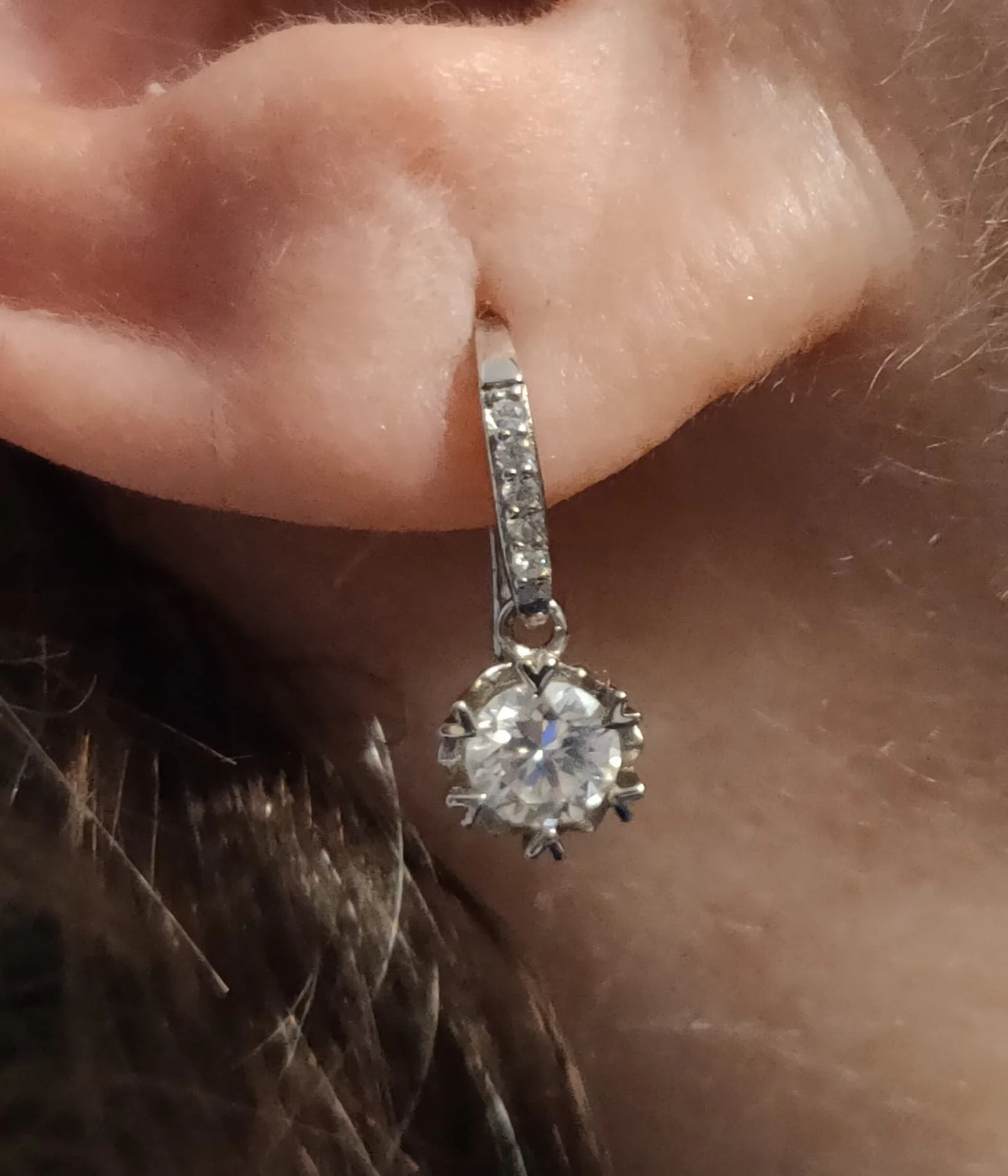 The earring are small but the Moissanites are shining, ,delivered very quickly and arrived with two cetiificates. I haven't tested them yet.