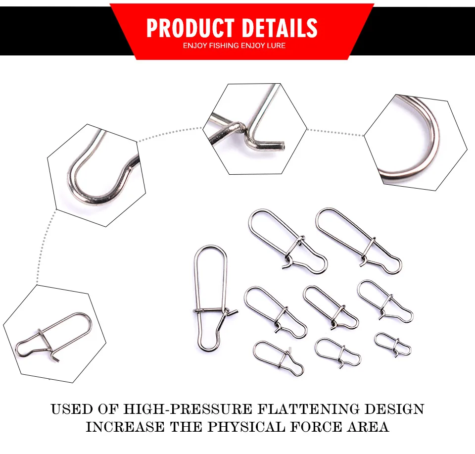 100 шт.лот 0 #-8 #304 нержавеющая сталь NiceFastlock Snap рыболовна...
