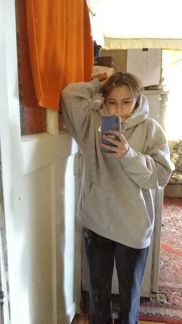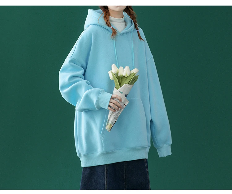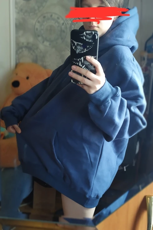 материал - толстовка очень качественная, чувствуется хлопок. не блестит. на рост 160 села оверсайзом, чуть ниже бедра. внутри флис, очень теплый, летом не походишь особо. никти, швы все ровно и ничего не торчит. мне она очень понравилась.