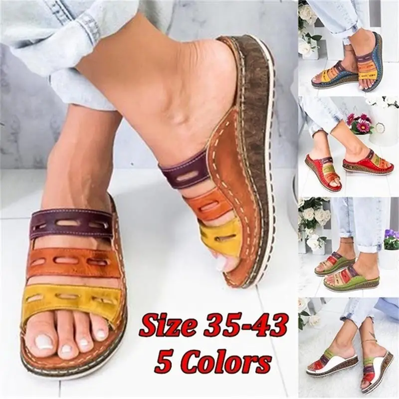 Женские шлепанцы с открытым носком, 3 цвета, на танкетке, сланцы, пляжные сандалии с открытым носком, повседневные, с прострочкой, в стиле ретро, лето 2021