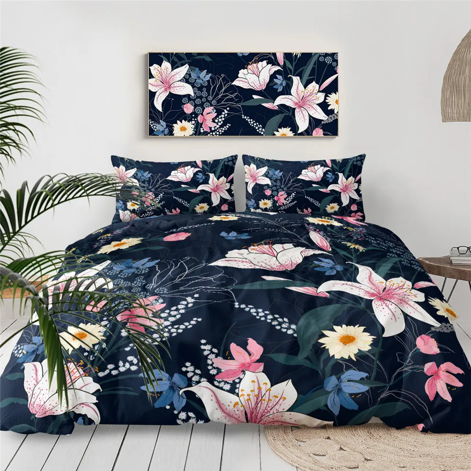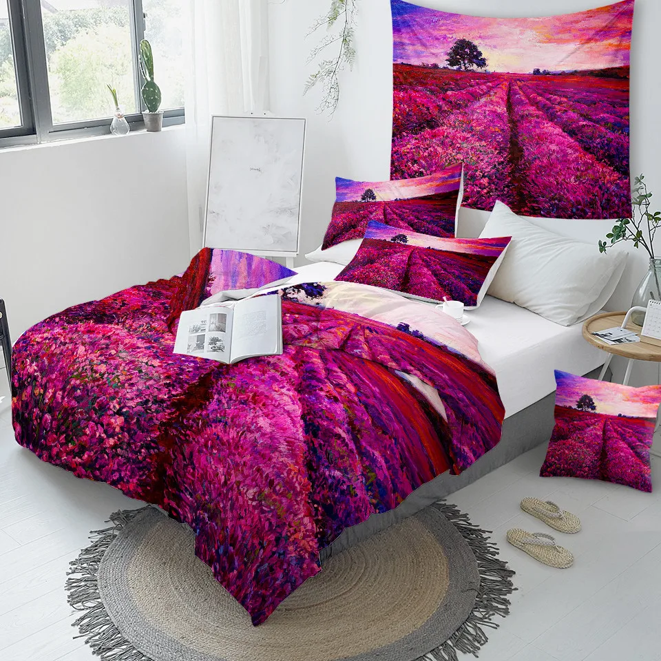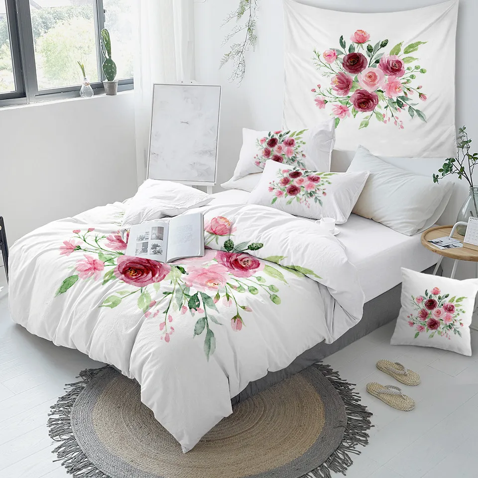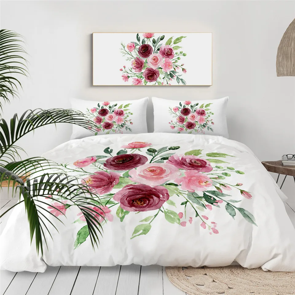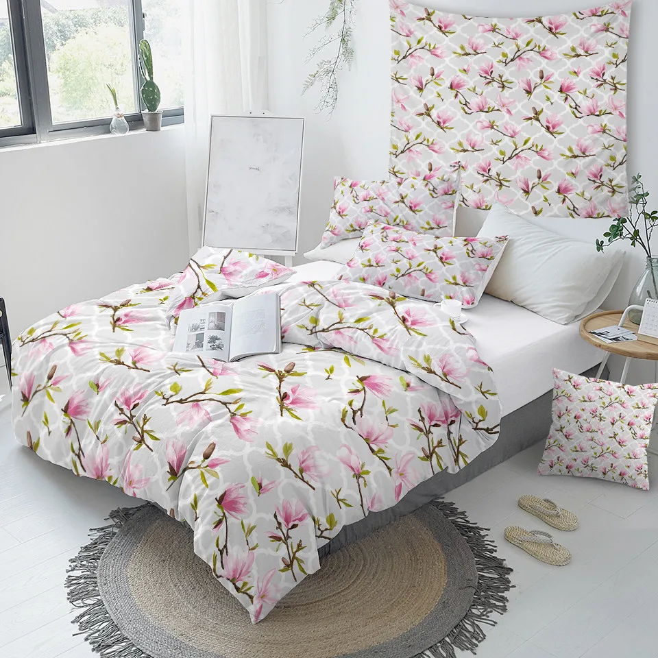 Комплект постельного белья BeddingOutlet с цветами сакуры, пододеяльник с японской цветущей вишней, 3 шт., акварельные покрывала, комплект для кровати в горах Фуджи