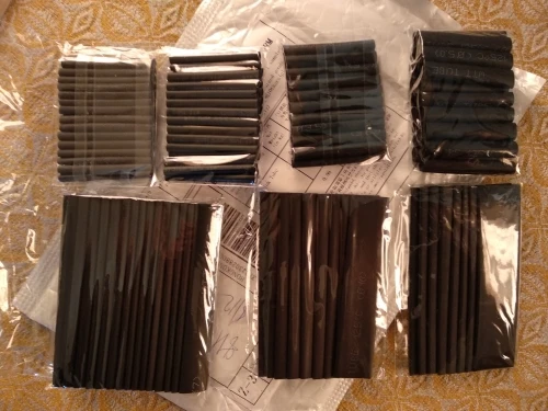 Доставка заняла чуть больше месяца. Пришли в сборной посылке вместе с другими заказами. Всё хорошо упаковано. Каждый размер упакован в отдельный пакет, а весь комплект в самозаклеивающийся пакет. Маркировка на трубках есть. Количество трубок каждого размера соответствует. На вид трубки хорошие. Такие вещи всегда пригодятся.