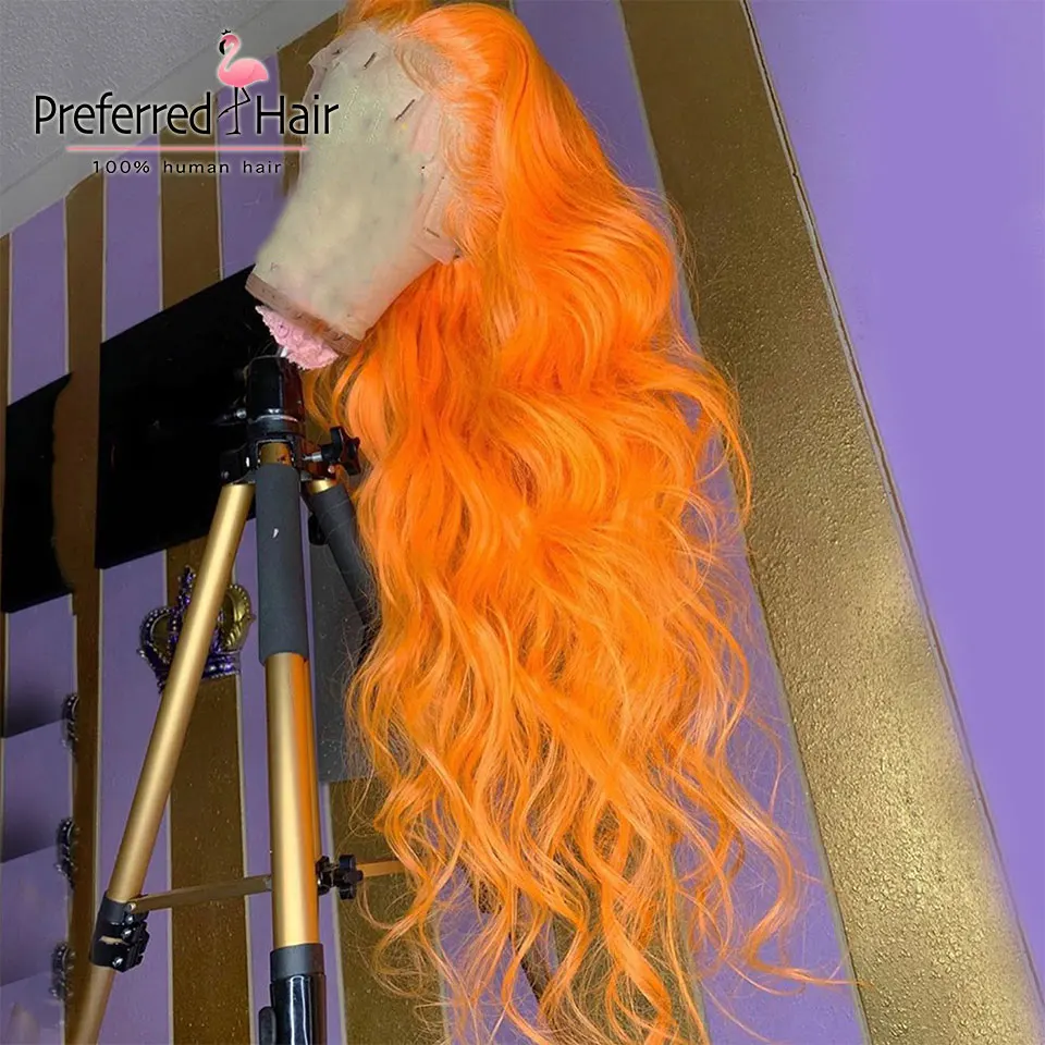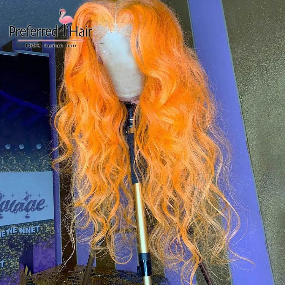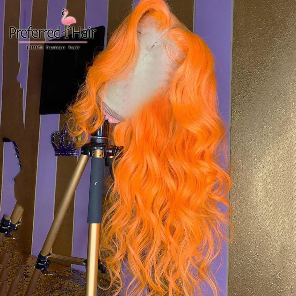 Оранжевые розовые кружевные передние парики человеческих волос для женщин