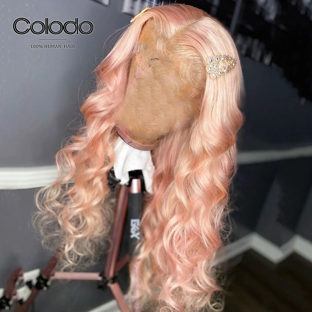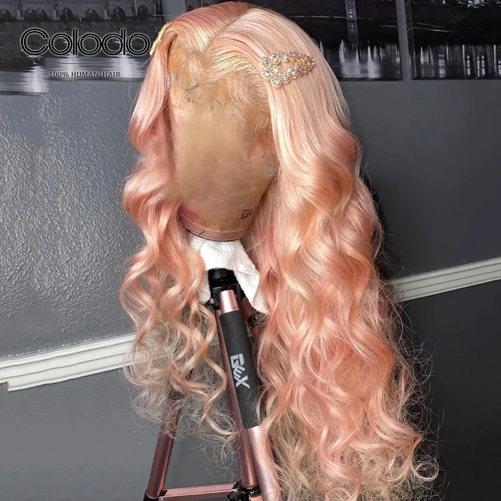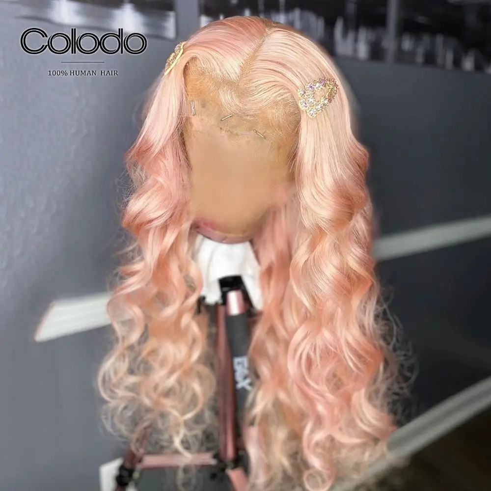 COLODO, прозрачные кружевные парики, предварительно выщипанные серые свободные волнистые парики, бразильские Remy, оранжевые, розовые, кружевные передние человеческие волосы, парики для женщин