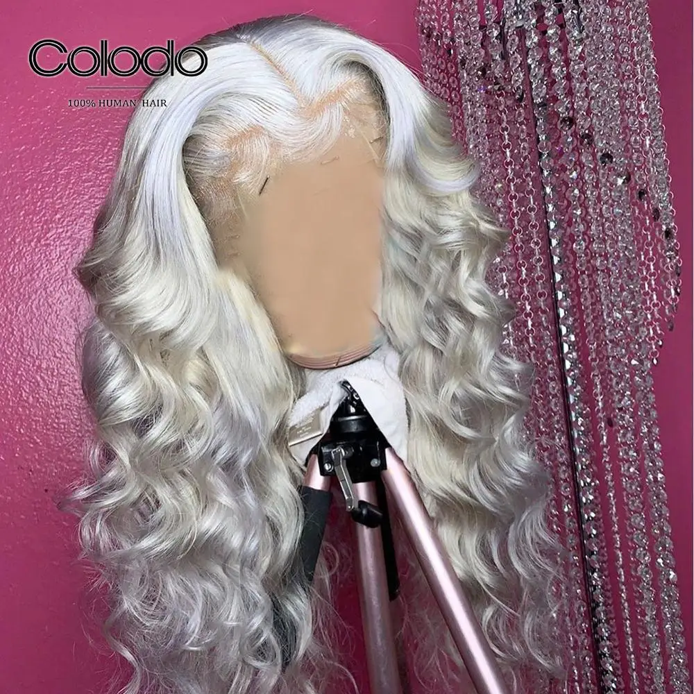 COLODO прозрачные кружевные парики предварительно выщипанные серые свободные волнистые парики бразильские Remy