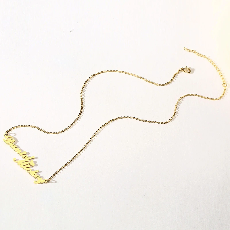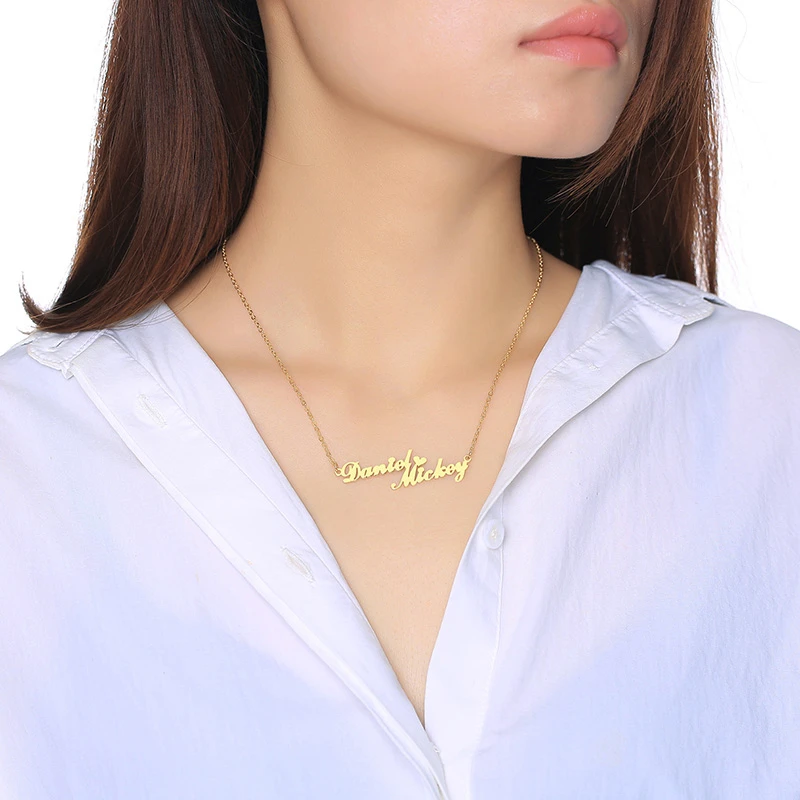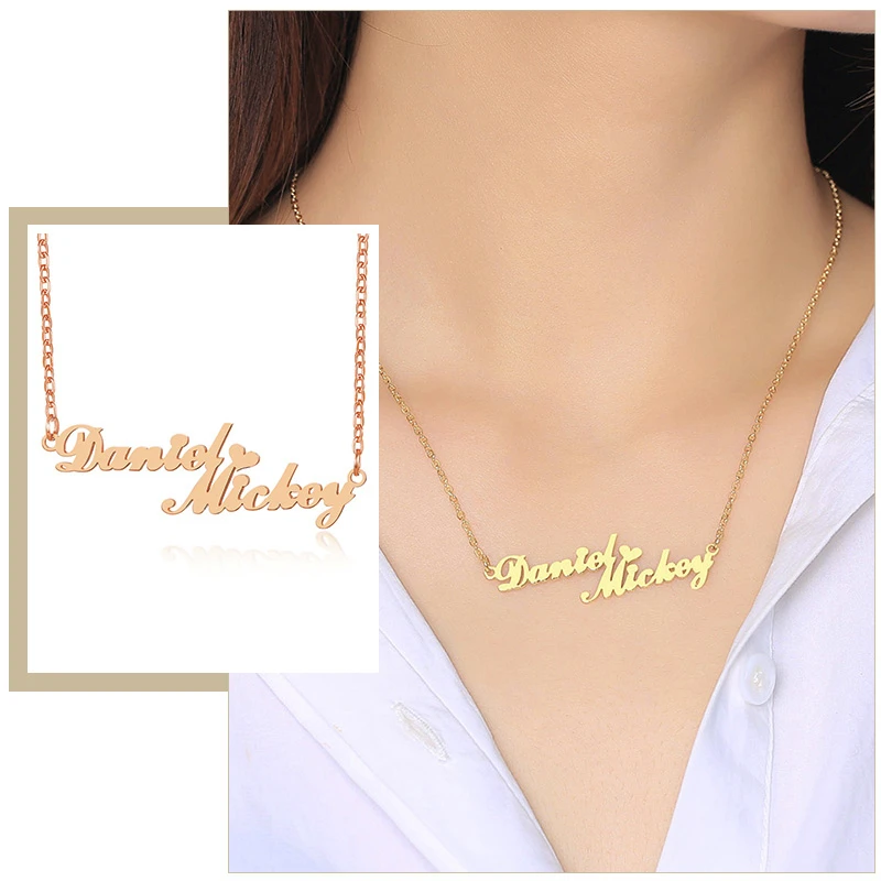 Женское Ожерелье из нержавеющей стали с двумя названиями на заказ, чокер для пар, мамы, дочки, сестры, персональный подарок (модель: фон-12)
