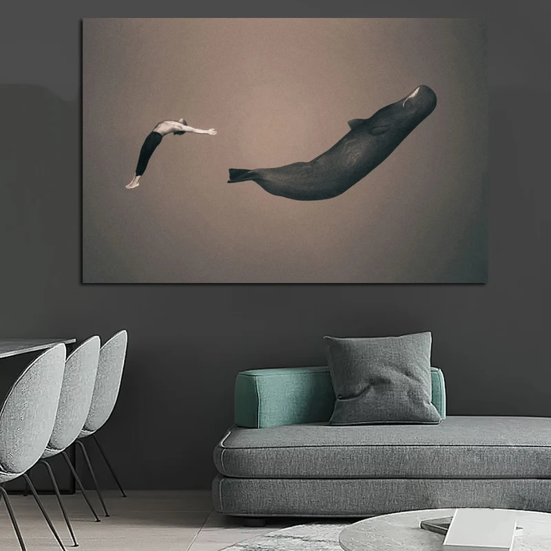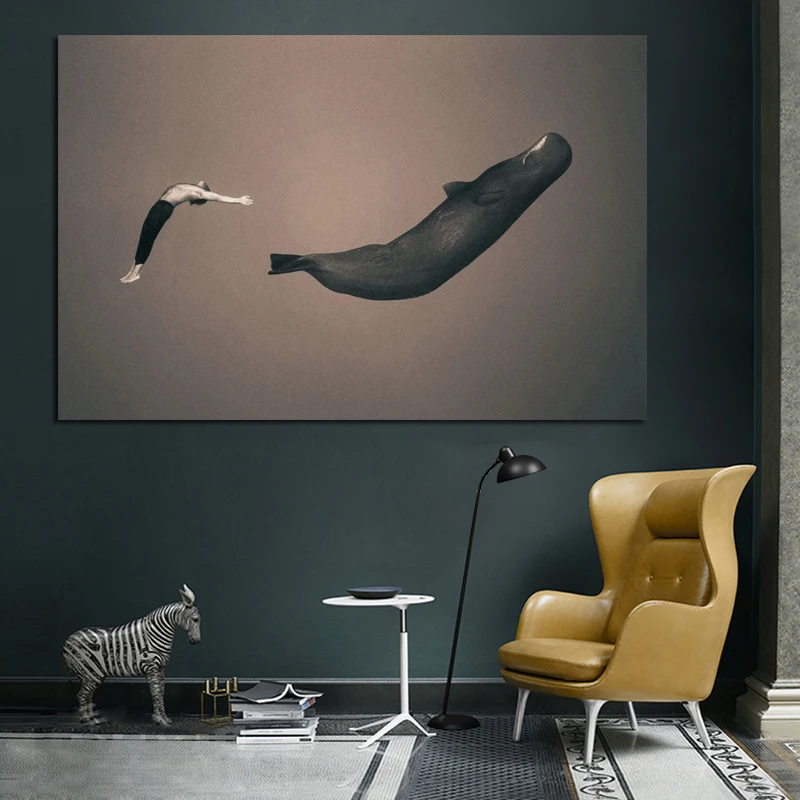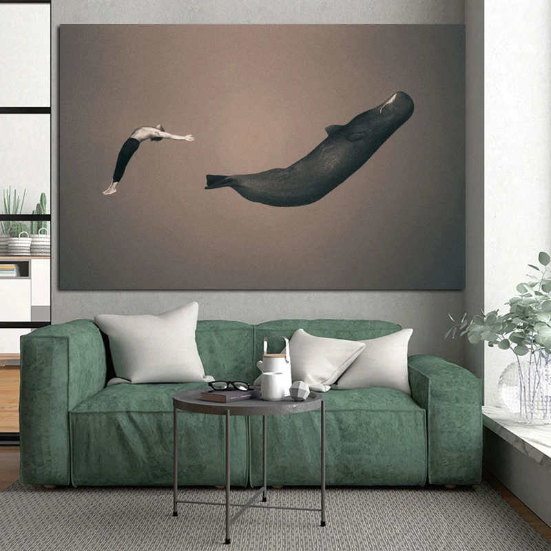 Большой размер, холст для танца с китами, картина на стену для гостиной, фотопечать, домашний декор