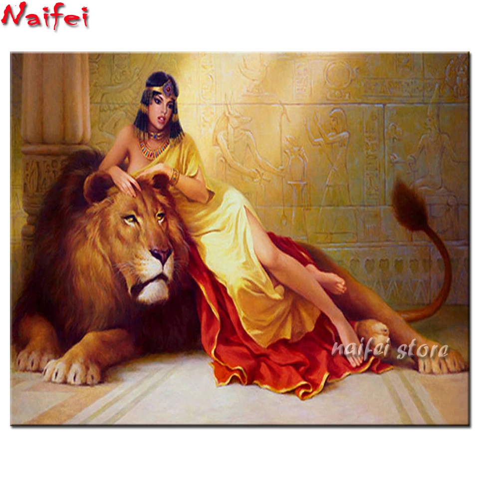 5D круглая квадратная Алмазная вышивка Клеопатра Diy полный набор алмазная живопись мозаика Египет красота изображения льва Стразы искусство