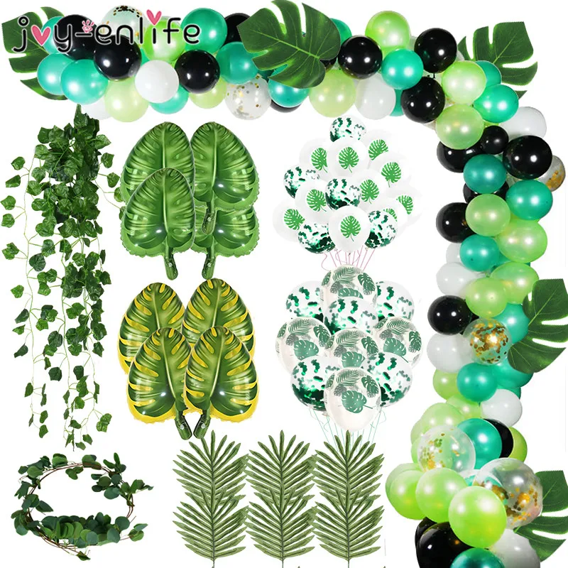 Латексный воздушный шар, зеленые листья плюща, арка, гавайский фламинго, искусственные растения, пальмовый лист, декор для вечеринки в стиле сафари, свадьбы, дня рождения, для будущей мамы