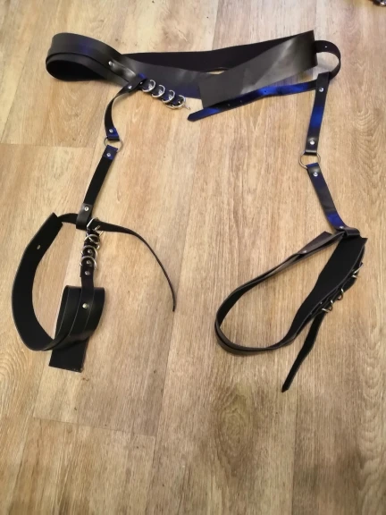 Прикольная портупея! Немного нужно переделать ремешки, но это не страшно... Ремни на ногах не облегают полностью, есть зазор из тонкого ремешка... Кожзам при использовании конечно не очень комфортен, но не критично... Рекомендую!