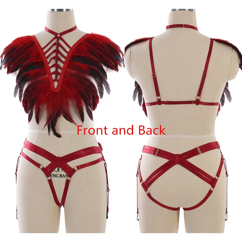 Бюстгальтер женский, с перьями, в готическом стиле, ремень-подвязка...