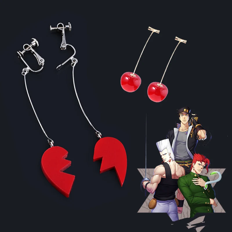 Номер моделиE85/Kujo Jotaro Broken Heart Kakyoin Noriaki Cherry Ear Clip Earrings