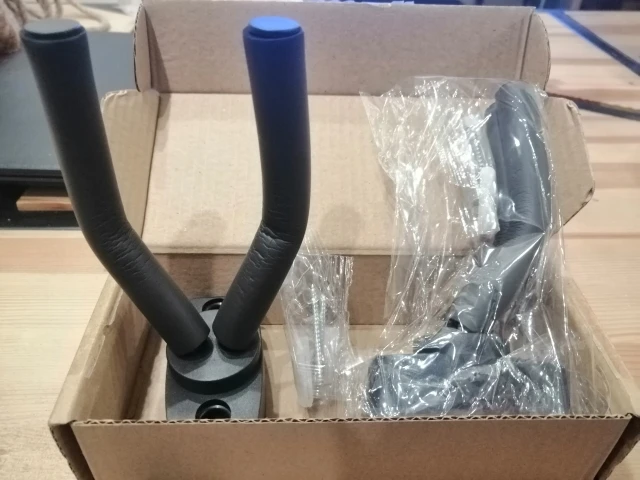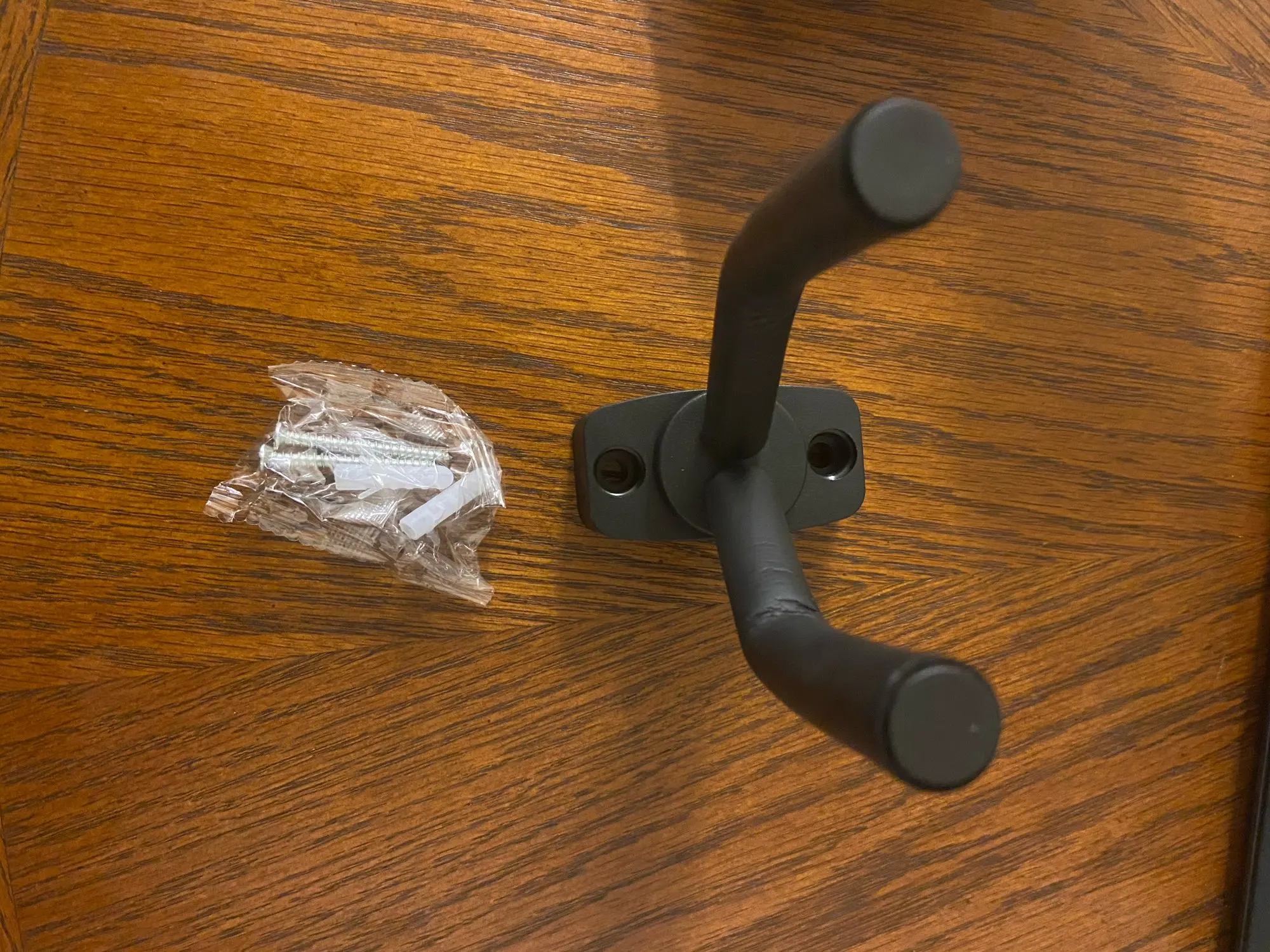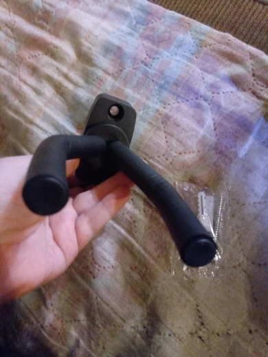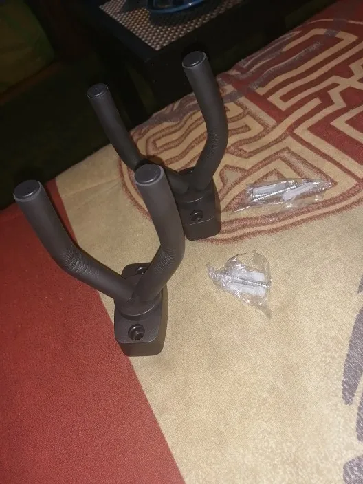 все в порядке. пришло курьером через неделю. можно отрегулировать ширину рогов, подойдёт и для маленьких инструментов. сидит довольно туго после настройки расстояния. думаю должно и электрогитару удержать, но не проверяла. по качеству ок. пара заноз, которые легко сточить. а в остальном все отлично. в комплекте 2 шурупа и 2 дюпеля. брала со скидкой, да и без скидки нормально. примерно столько же стоит 1. а тут 2.