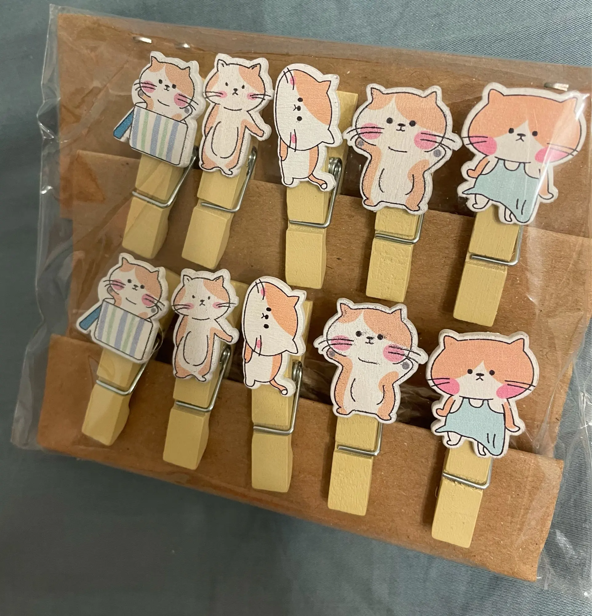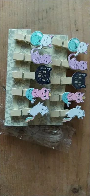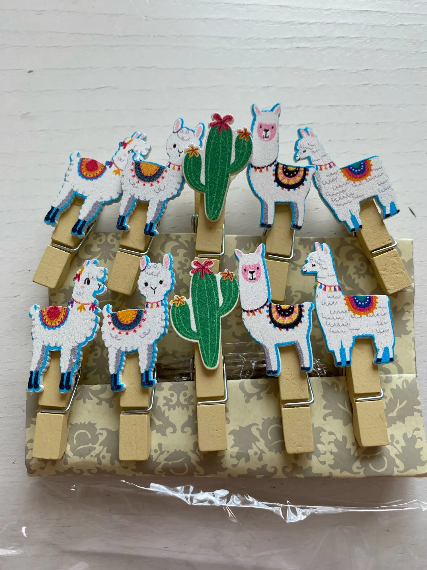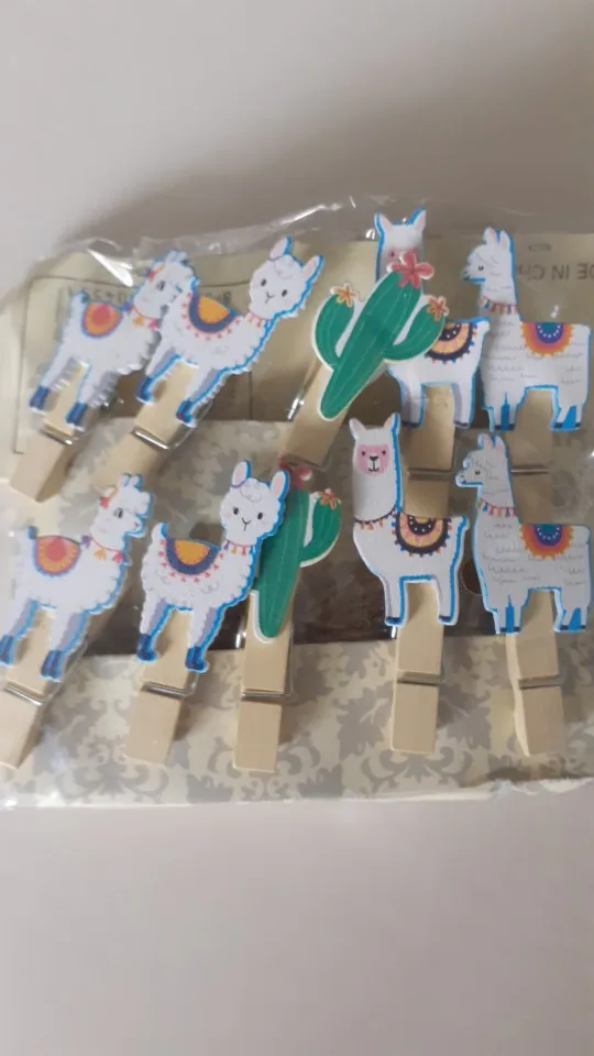 10 шт., мультяшный Кот, собака, альпака, кактус, деревянные зажимы, фотобумага, прищепки для рукоделия, вечерние зажимы для украшения дома, зажим с пеньковой веревкой