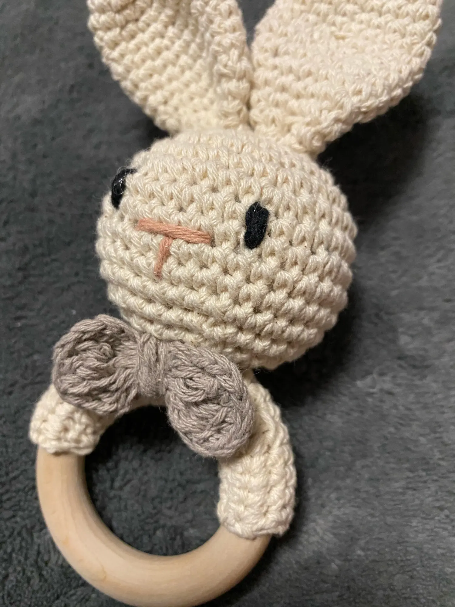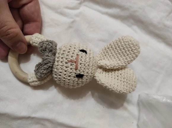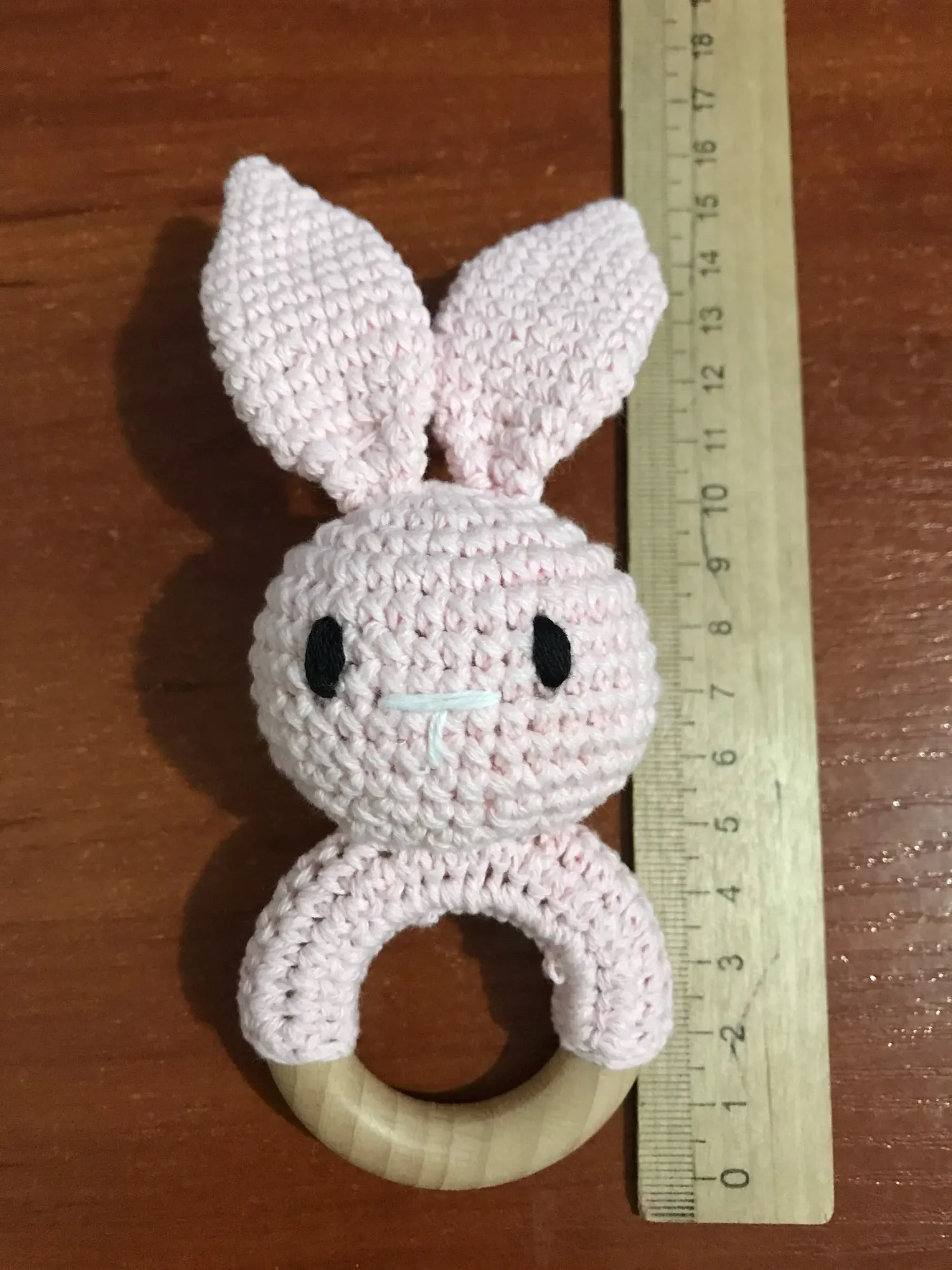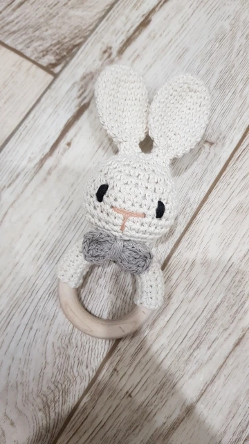 Хороший аккуратный зайчик. Кольцо деревянное, прошу заметить, темное и не уверена что из бука. Оно толще и темнее обычного. Я очень довольна