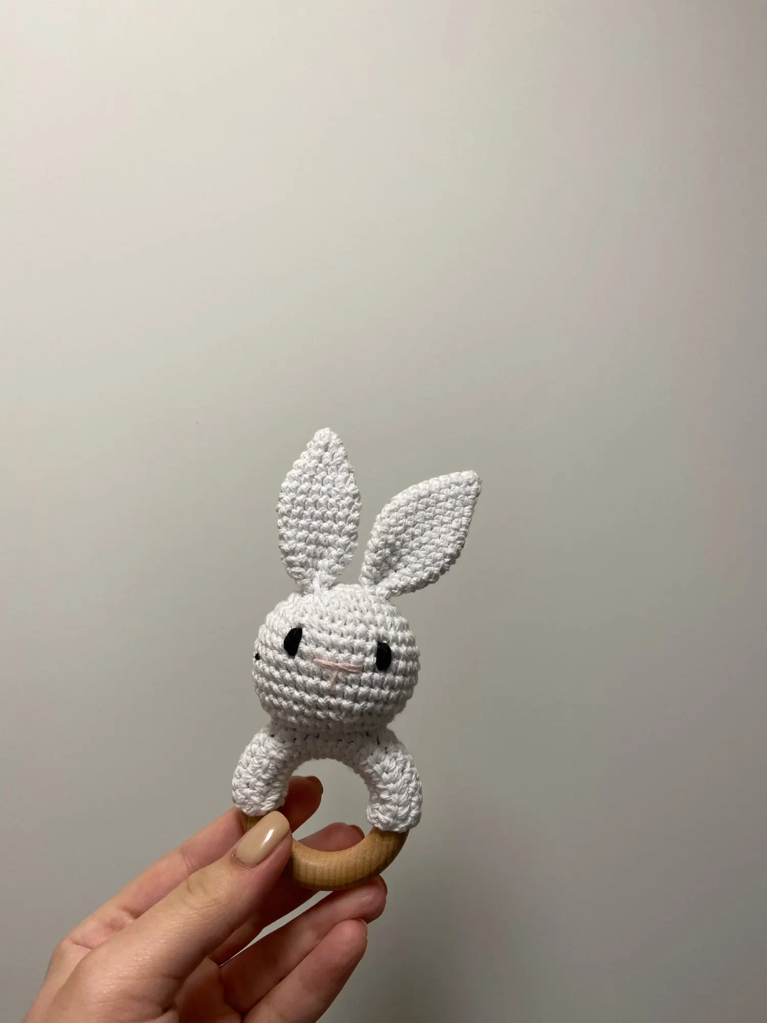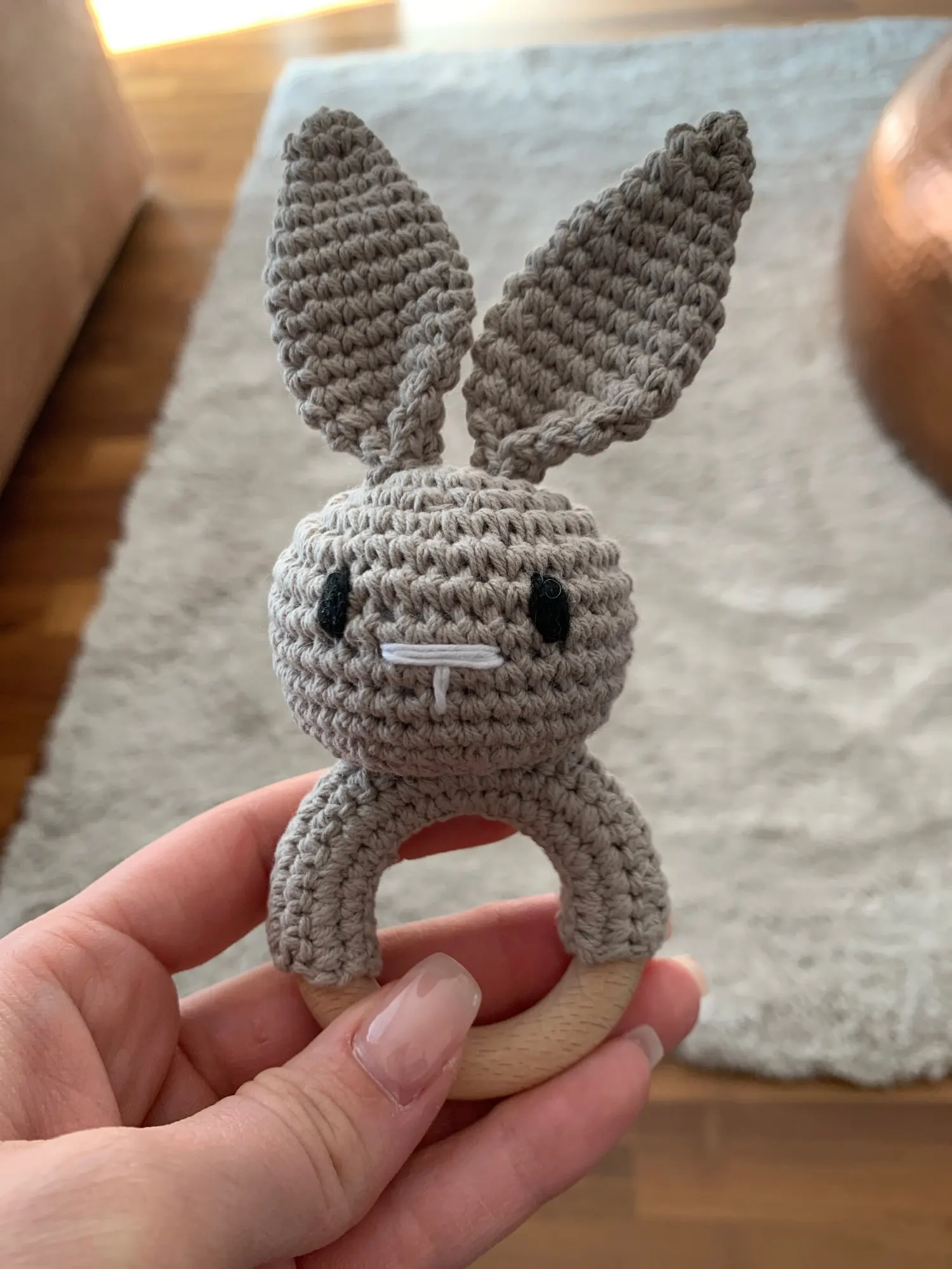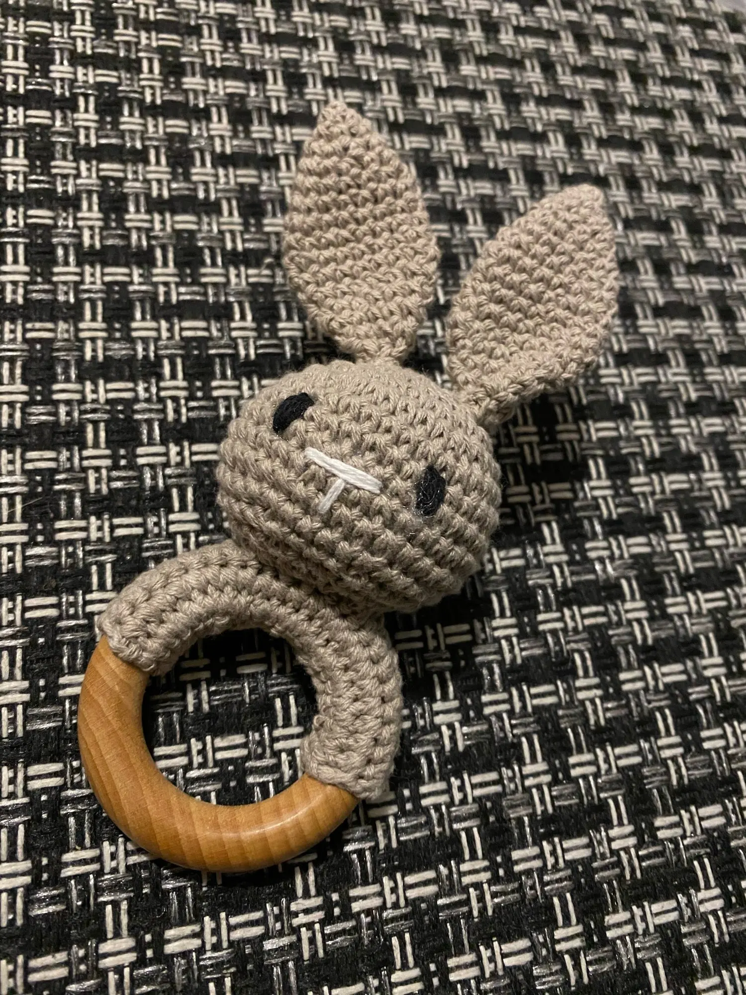 Хороший аккуратный зайчик. Кольцо деревянное, прошу заметить, темное и не уверена что из бука. Оно толще и темнее обычного. Я очень довольна